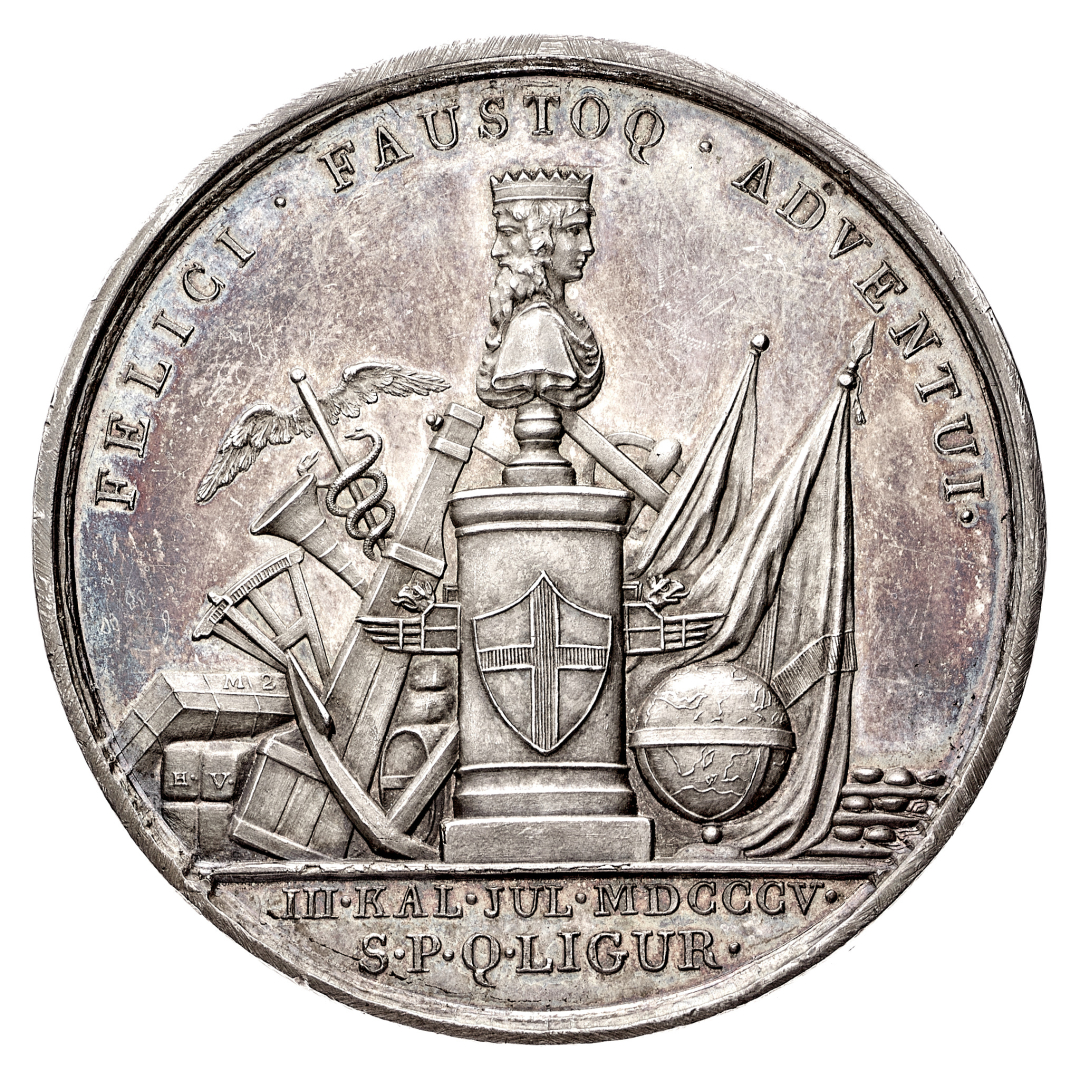 Napoleone I Re d'Italia (1805-1814) - Medaglia 1805 per l'entrata di Napoleone a Genova - Opus Gerolamo Vassallo - Diametro mm. 49 e peso gr. 48,79 - Molto rara - Splendida patina di medagliere, q.FDC