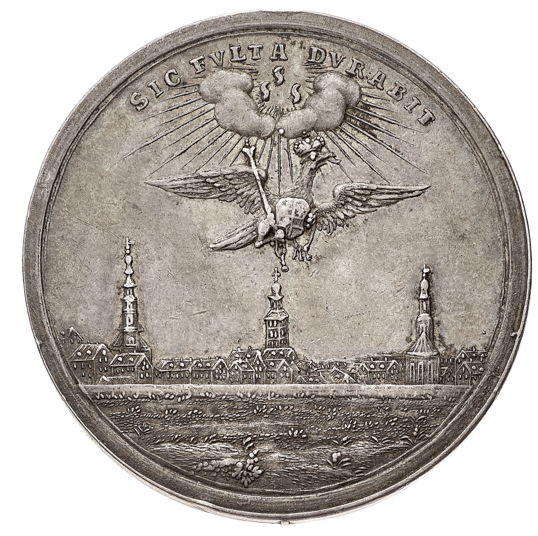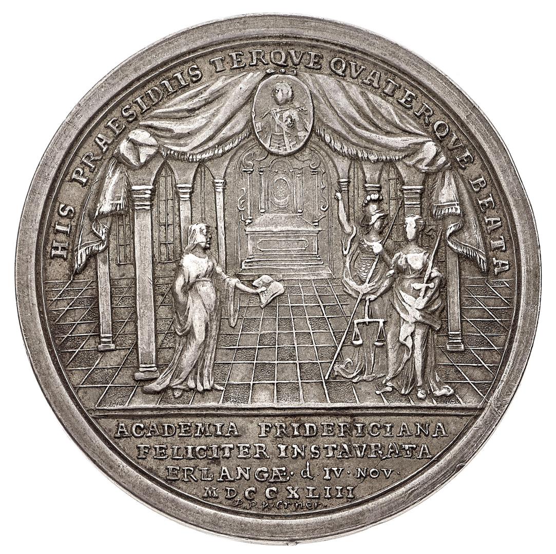 Germania - Brandenburg-Bayreuth - Friedrich (1735-1763) - Medaglia 1743 commemorativa dell'inaugurazione dell'Università di Erlangen - Opus P.P. Werner - Diametro mm. 46 e peso gr. 28,83 - Rara - q.SPL