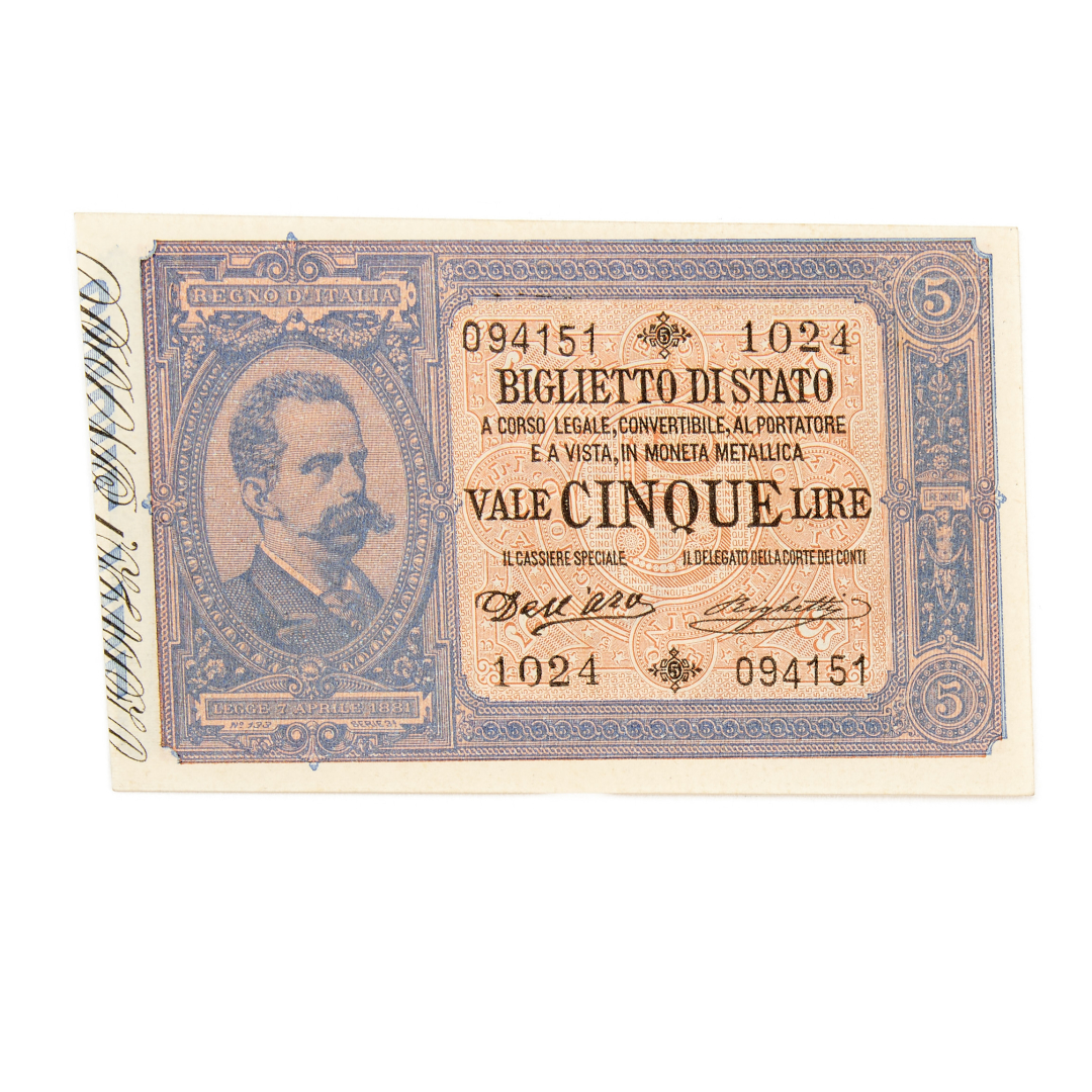 Biglietto di Stato da 5 Lire - D.M. 25.10.1892 - Non comune - SUP