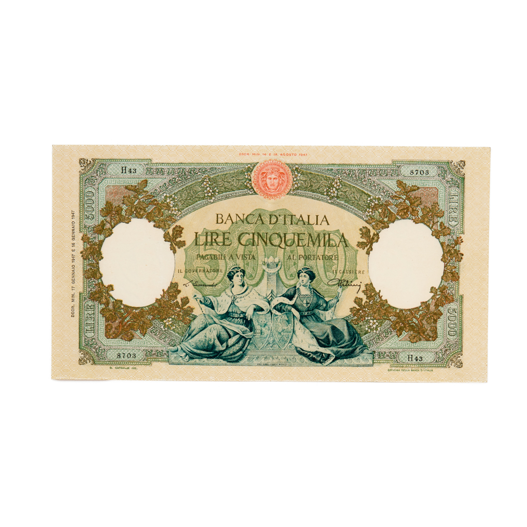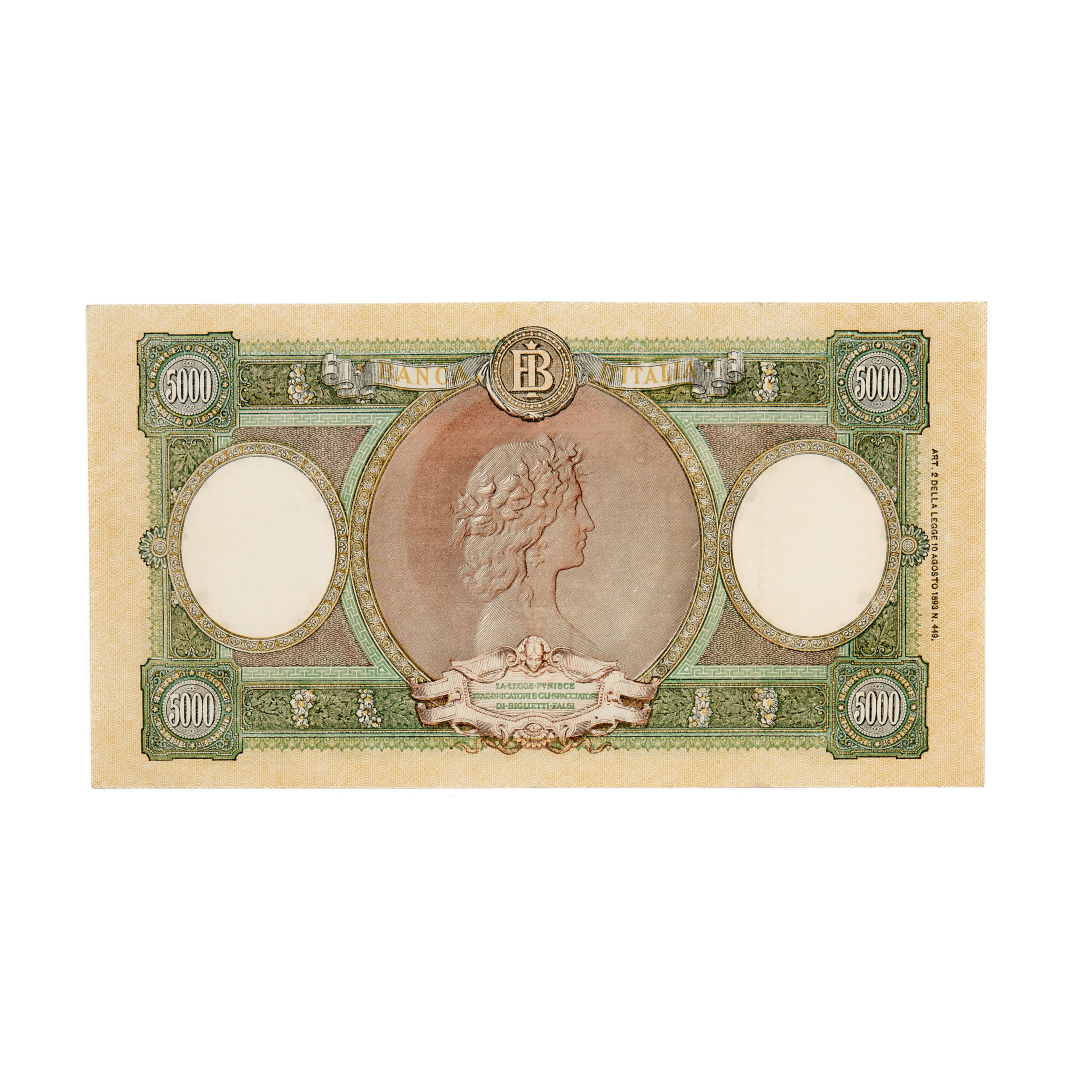 Biglietto di Banca da 5.000 Lire "Repubbliche Marinare - Medusa" - D.M. 17.1.1947 - Tre pieghe verticali, di cui la centrale più marcata, q.SPL