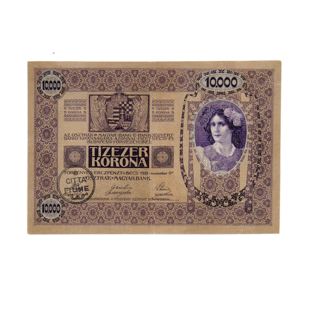 Città di Fiume - 10.000 Corone 2.11.1918 con timbro di Fiume - Molto raro - BB - Ex collezione Avv. Bruno Segre