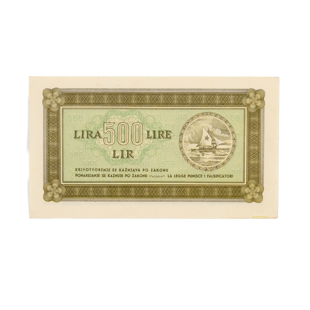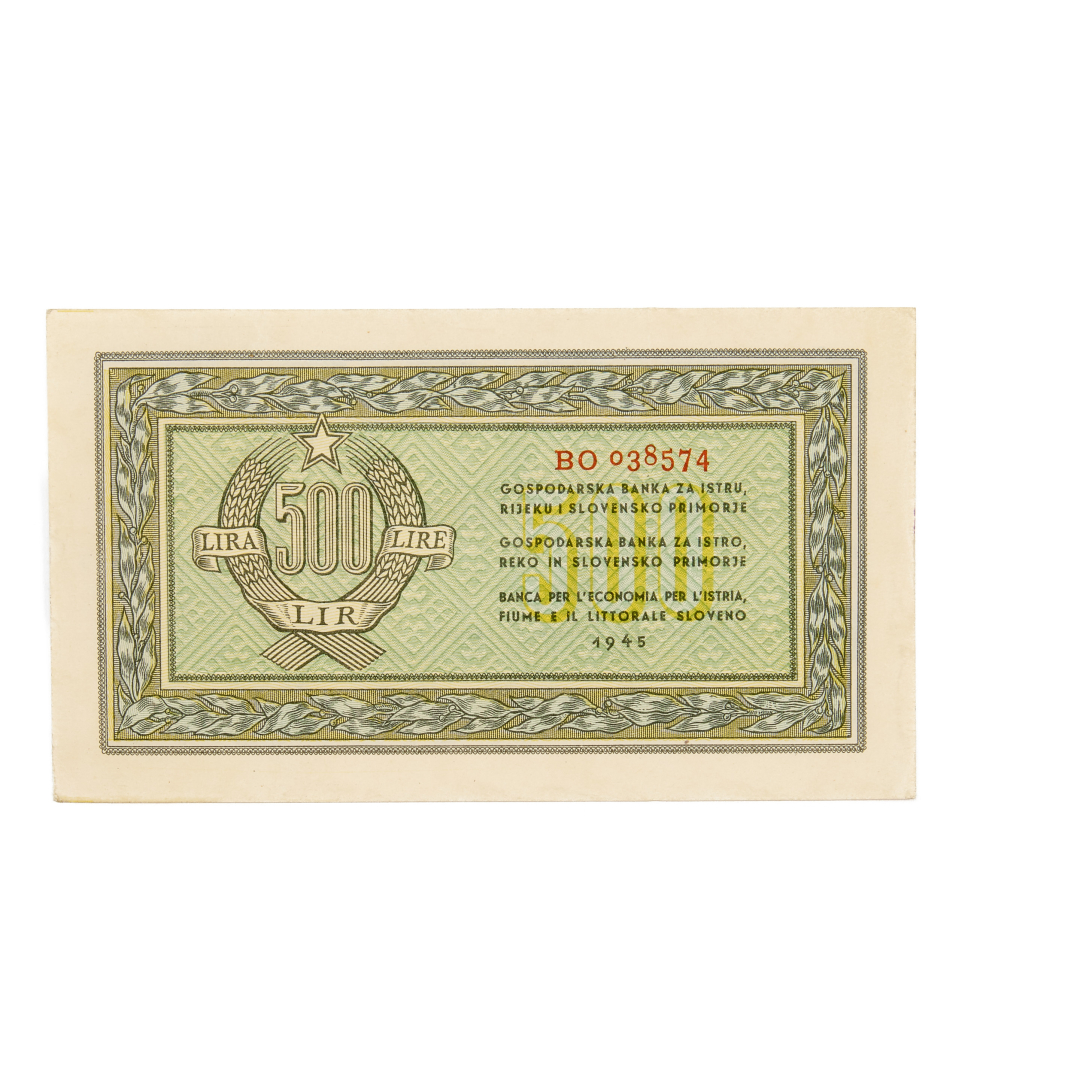 Banca per l'economia per Istria, Fiume e il Litorale Sloveno - 500 Lire 1945 - Lievi unghiate e difetti, SPL - Ex collezione Avv. Bruno Segre