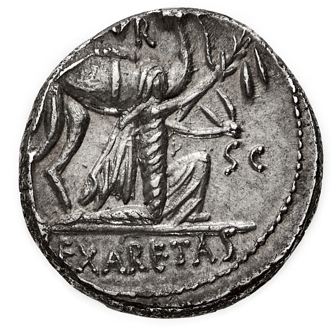 DENARIO AI NOMI M.SCAVR, P.HVPSAEVS AED.CVR DATABILE AL 58 A.C.