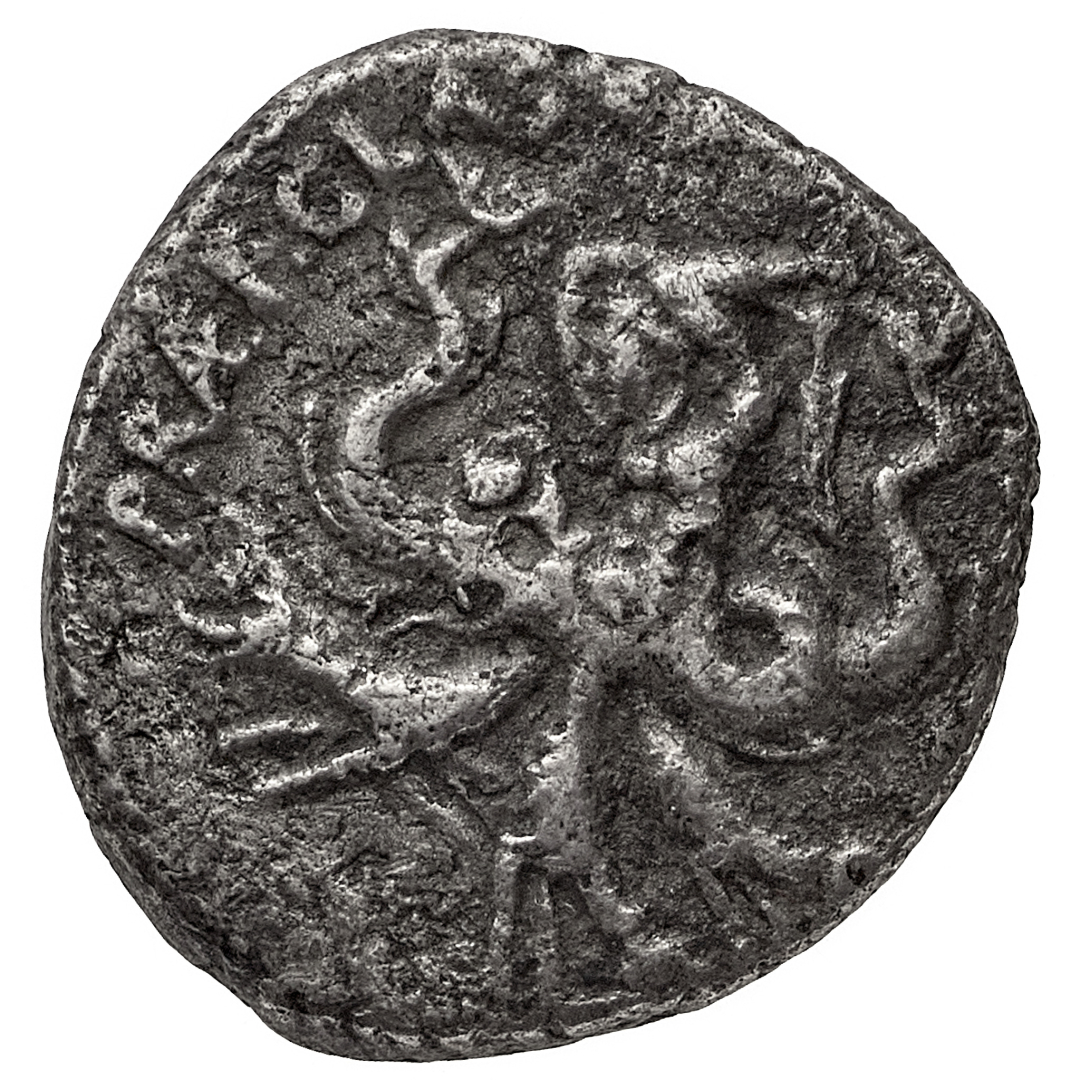 Sesto Pompeo - Denario databile al periodo 42-40 a.C. - Zecca: in Sicilia - Diritto: il faro di Messina sormontato dalla statua di Nettuno; in basso una nave verso sinistra con un'aquila legionaria sulla prua e uno scettro a poppa - Rovescio: il mostro Scilla con un timone fra le mani - gr. 3,54 - Molto rara - Contromarca al diritto, BB - Proveniente dall'asta Artemide LX, 28-29.10.2023, n. 465