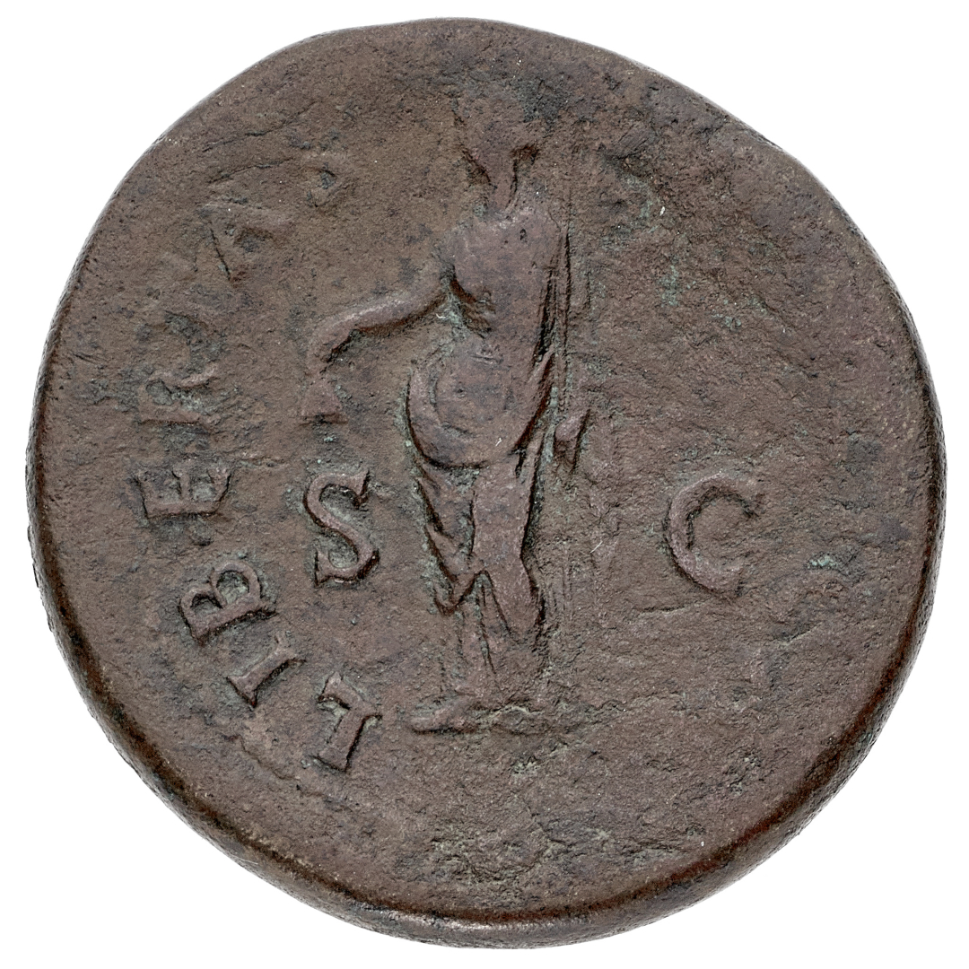 Sesterzio databile al 68 d.C. - Zecca: Roma - Diritto: Testa laureata dell'Imperatore a destra - Rovescio: la Libertas stante a sinistra tiene un pileo con la mano destra e uno scettro con la sinistra - gr. 26,13 - Rara - q.BB