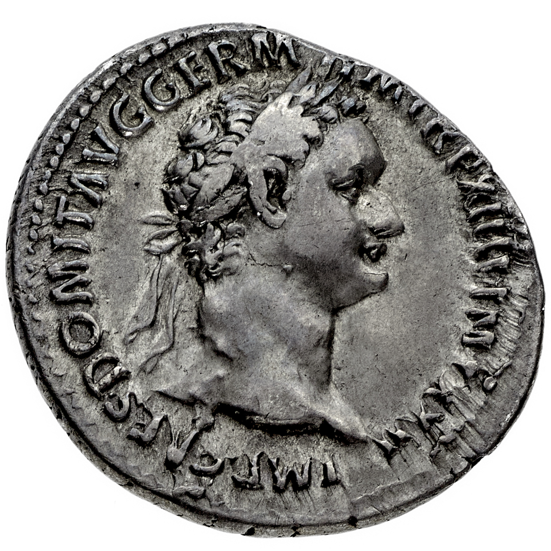Cistoforo databile al 95 d.C. - Zecca: Asia Minore o Roma - Diritto: testa laureata dell'Imperatore a destra - Rovescio: aquila legionaria fra due stendardi - gr. 10,14 - Rara - q.SPL