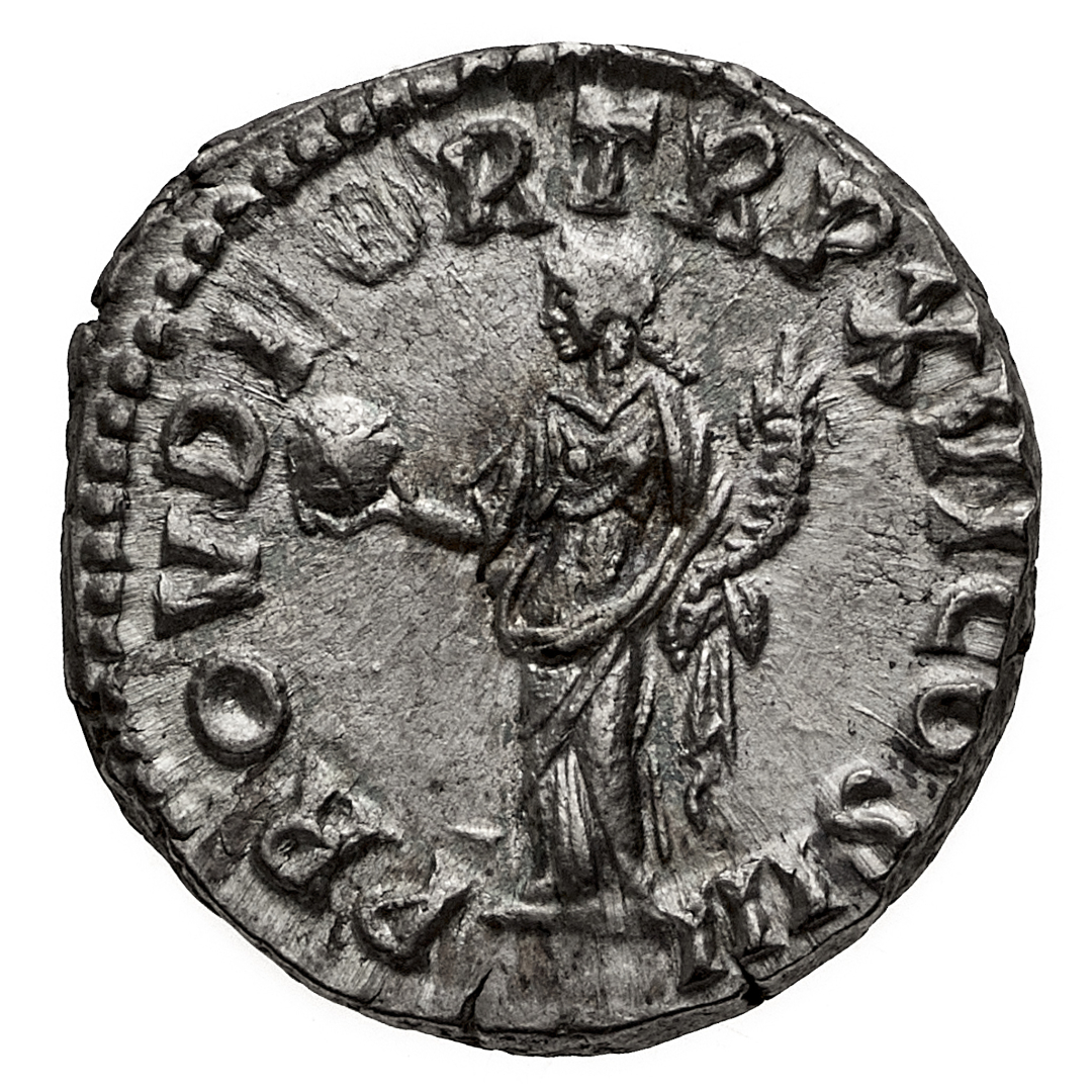Denario databile al 162 d.C. - Zecca: Roma - Diritto: testa laureata dell'Imperatore a destra - Rovescio: Providentia stante a sinistra tiene un globo con la mano destra e una cornucopia con la sinistra - gr. 3,38 - SPL