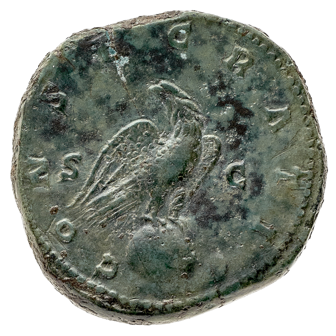 SESTERZIO POSTUMO DI "CONSACRAZIONE" CONIATO NEL 169 D.C., DURANTE L'IMPERO DI MARCO AURELIO