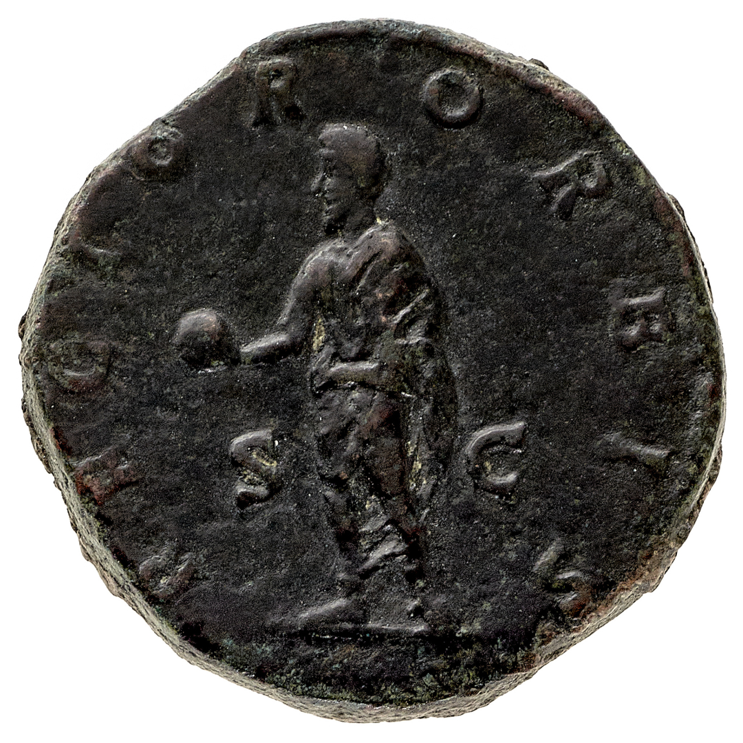 Sesterzio - Zecca: Roma - Diritto: testa laureata dell'Imperatore a destra - Rovescio: Didio Giuliano stante a sinistra tiene un globo con la mano destra - Rara - Migliore di BB - Proveniente dalla collezione Signorelli, asta Santamaria, Roma 13.3.1953, n. 625