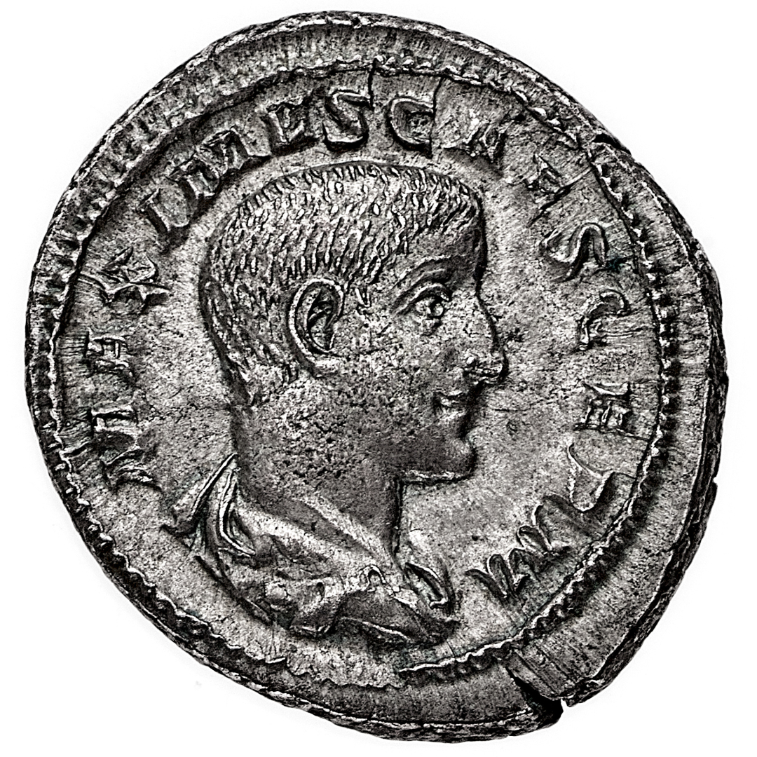 DENARIO AL NOME E CON L'EFFIGIE DI MASSIMO CESARE, FIGLIO DELL'IMPERATORE, DATABILE AGLI ANNI 236-238 D.C.