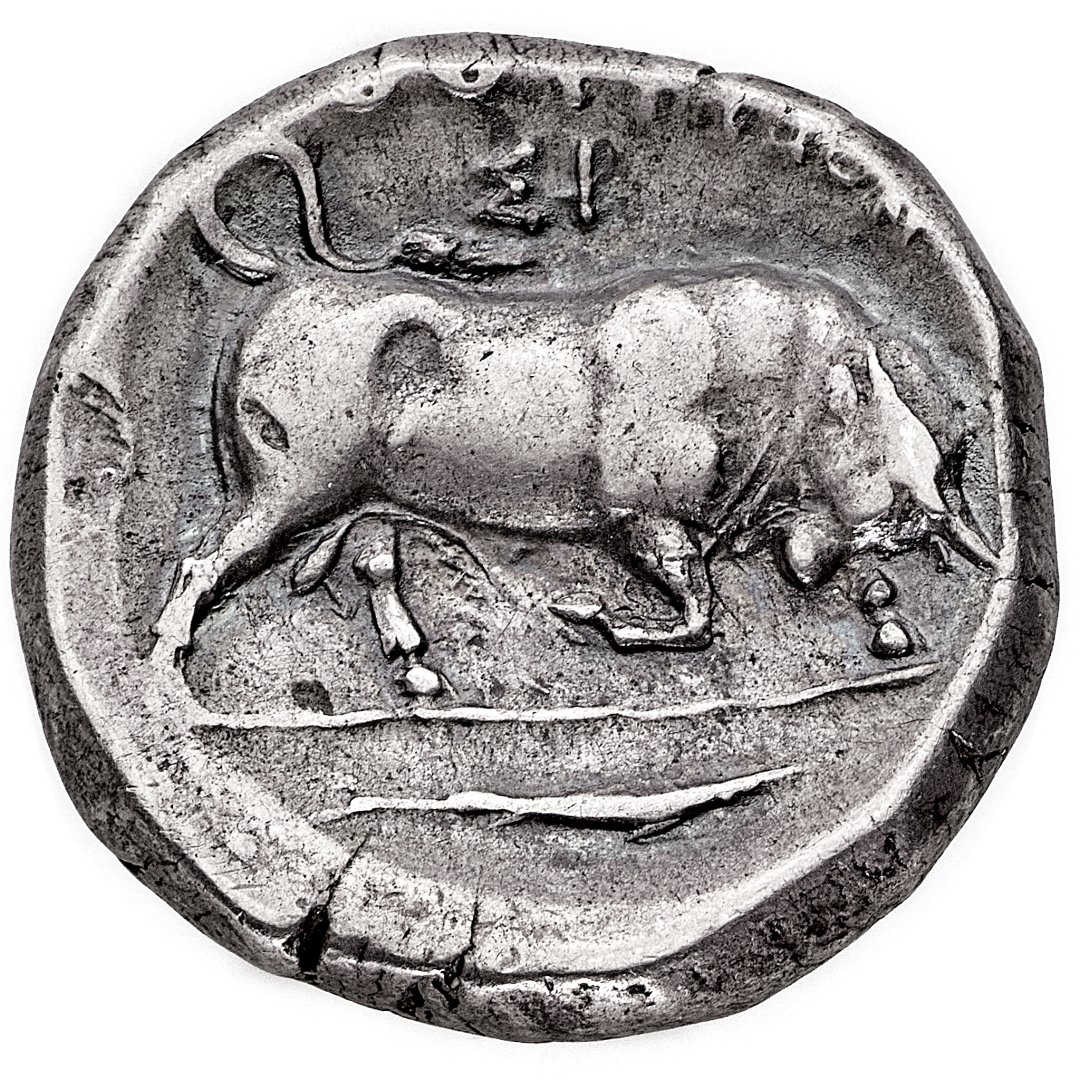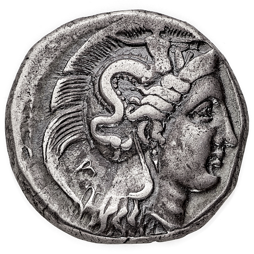 Thurium - Doppio Statere databile al periodo 350-300 a.C. - Diritto: testa di Atena a destra con elmo attico crestato e ornato dal mostro Scilla che tiene un remo - Rovescio: toro nell'atto di caricare verso destra - gr. 15,91 - Rara - Migliore di BB