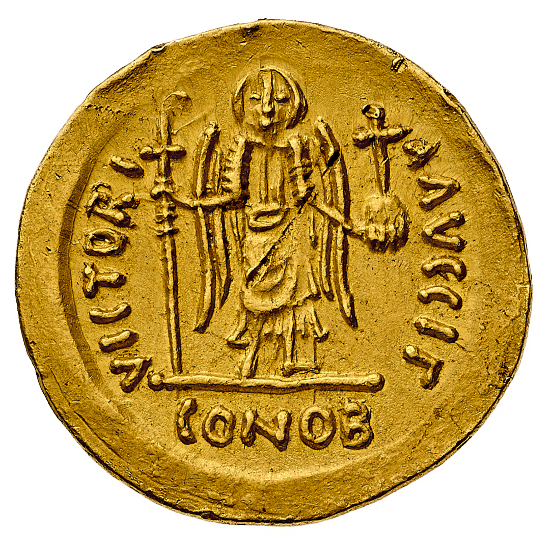 Foca (602-610) - Solido databile agli anni 603-604 - Zecca: Ravenna (?) - Diritto: mezzo busto coronato dell'Imperatore di fronte con globo crucigero nella mano destra - Rovescio: un angelo stante di fronte tiene un'asta culminante con il monogramma di Cristo con la mano destra e un globo crucigero con la sinistra - gr. 4,50 - SPL - Officina non registrata in letteratura, ma si è optato per la zecca di Ravenna per lo stile, riconducibile agli esemplari battuti nella zecca ravennate