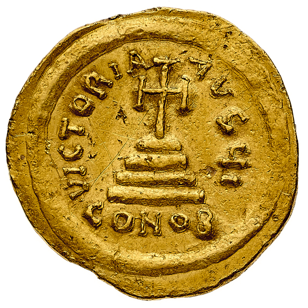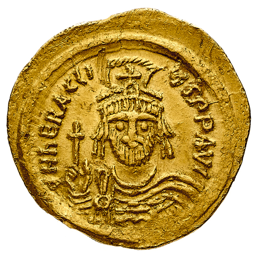 Eraclio (610-641) - Solido databile al periodo 610-613 - Zecca: Costantinopoli - Diritto: mezzo busto coronato dell'Imperatore di fronte con una croce nella mano destra - Rovescio: croce potenziata su un basamento di tre gradini - gr. 4,43 - Metallo lucente, migliore di SPL