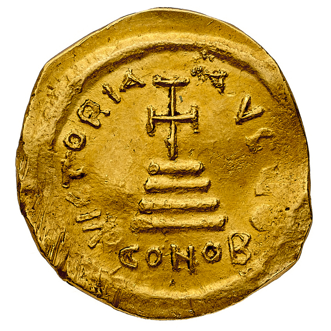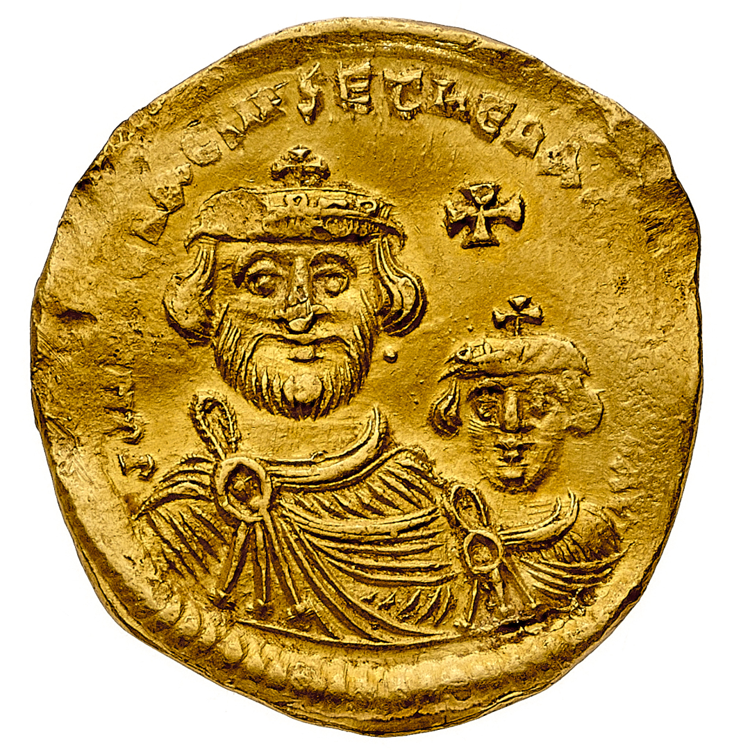 Eraclio (610-641) - Solido databile al periodo 616-625 - Zecca: Costantinopoli - Diritto: mezzi busti affiancati dell'Imperatore e del figlio Eraclio Costantino, entrambi con corona di fattura semplice sormontata da una piccola croce - Rovescio: croce potenziata su un basamento di tre gradini - gr. 4,39 - Lieve piegatura del tondello, altrimenti q.SPL