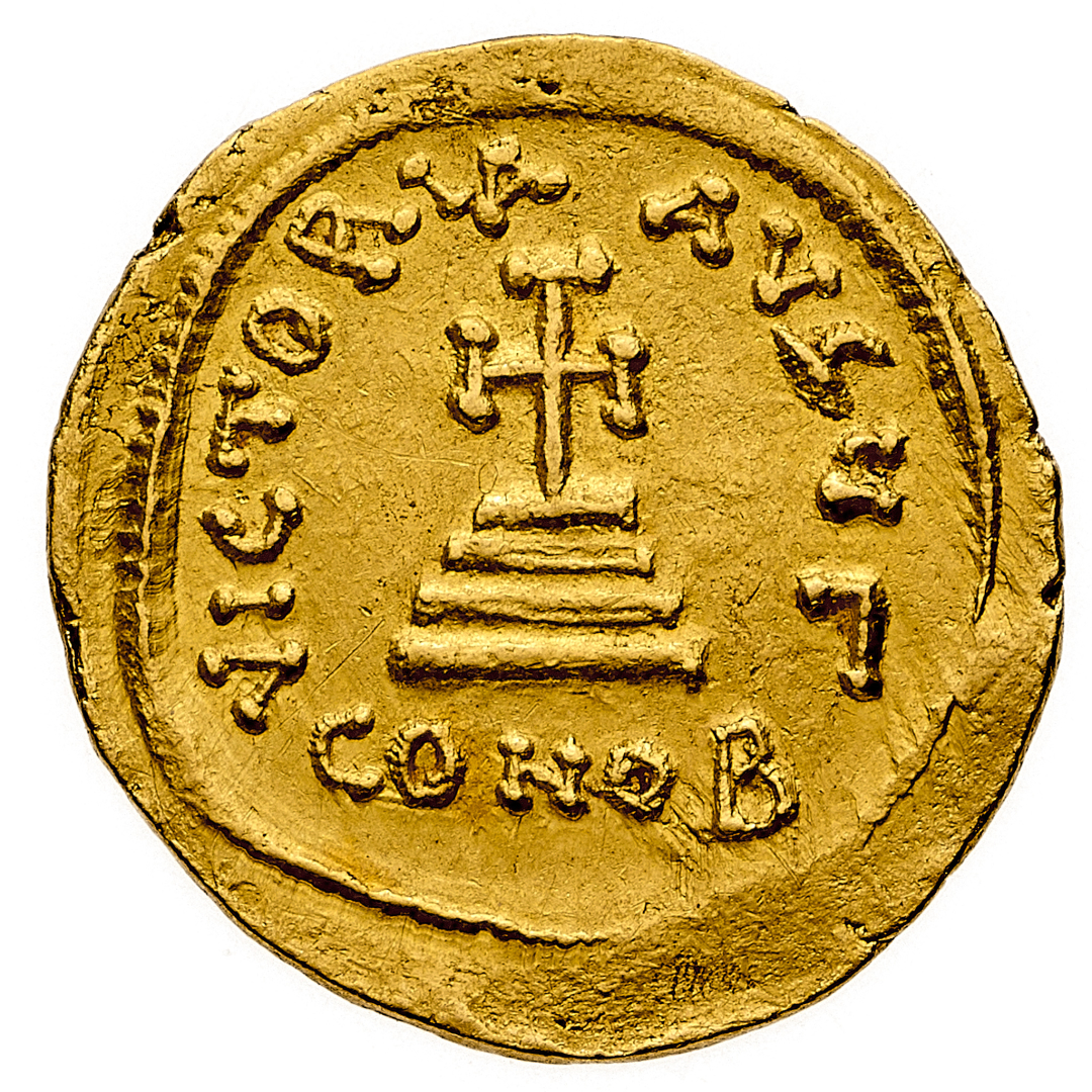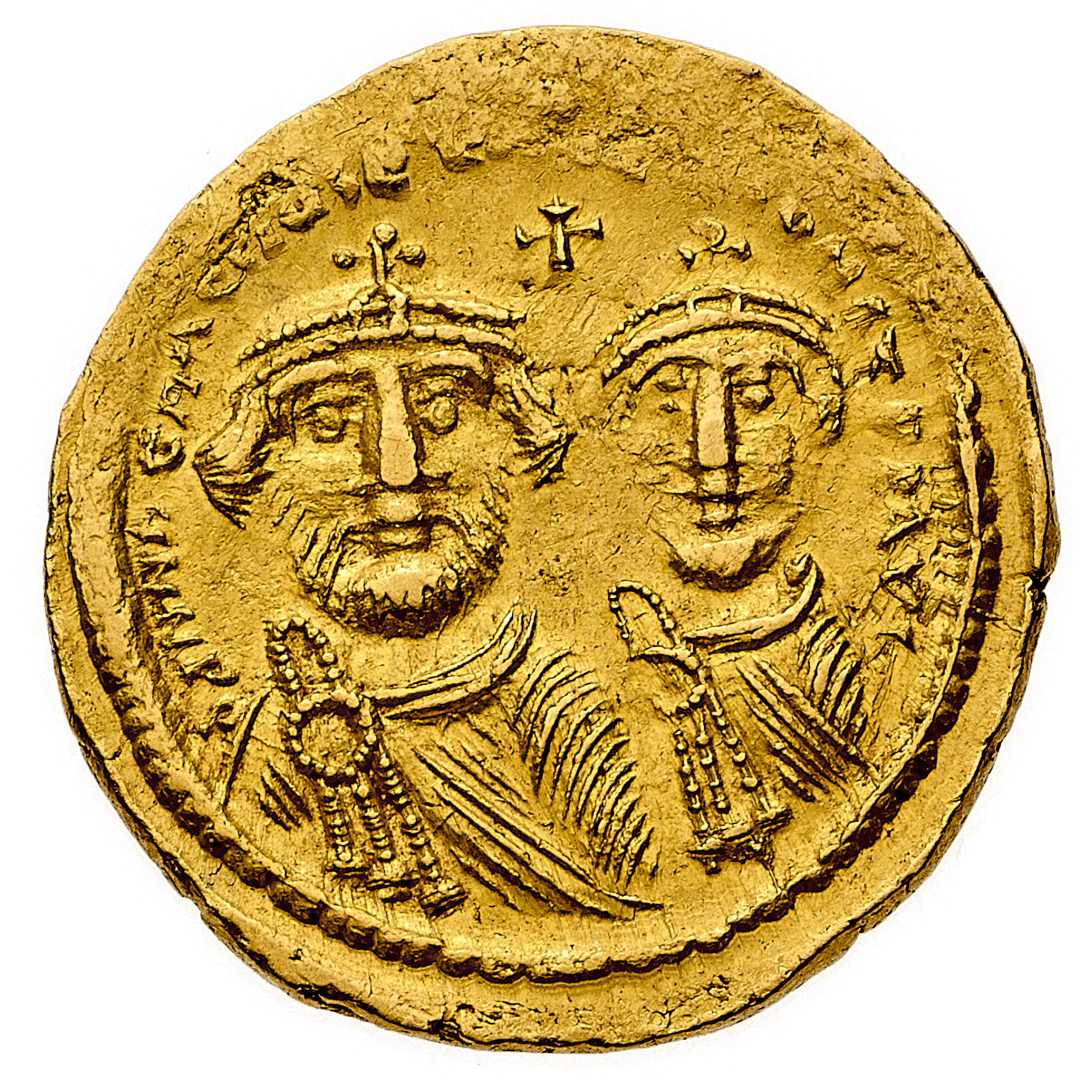 Eraclio (610-641) - Solido databile al periodo 626-629 - Zecca: Costantinopoli - Diritto: mezzi busti affiancati dell'Imperatore e del figlio Eraclio Costantino, entrambi con corona di fattura semplice sormontata da una piccola croce - Rovescio: croce potenziata su un basamento di tre gradini - gr. 4,51 - q.SPL