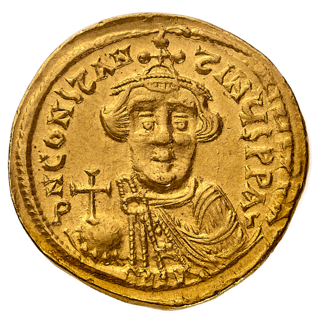 Costante II (641-668) - Solido databile al periodo 641-646 - Zecca: Costantinopoli - Diritto: mezzo busto coronato dell'Imperatore di fronte con un globo crucigero nella mano destra - Rovescio: croce potenziata su un basamento di tre gradini - gr. 4,33 - Sigillata ("SPL")