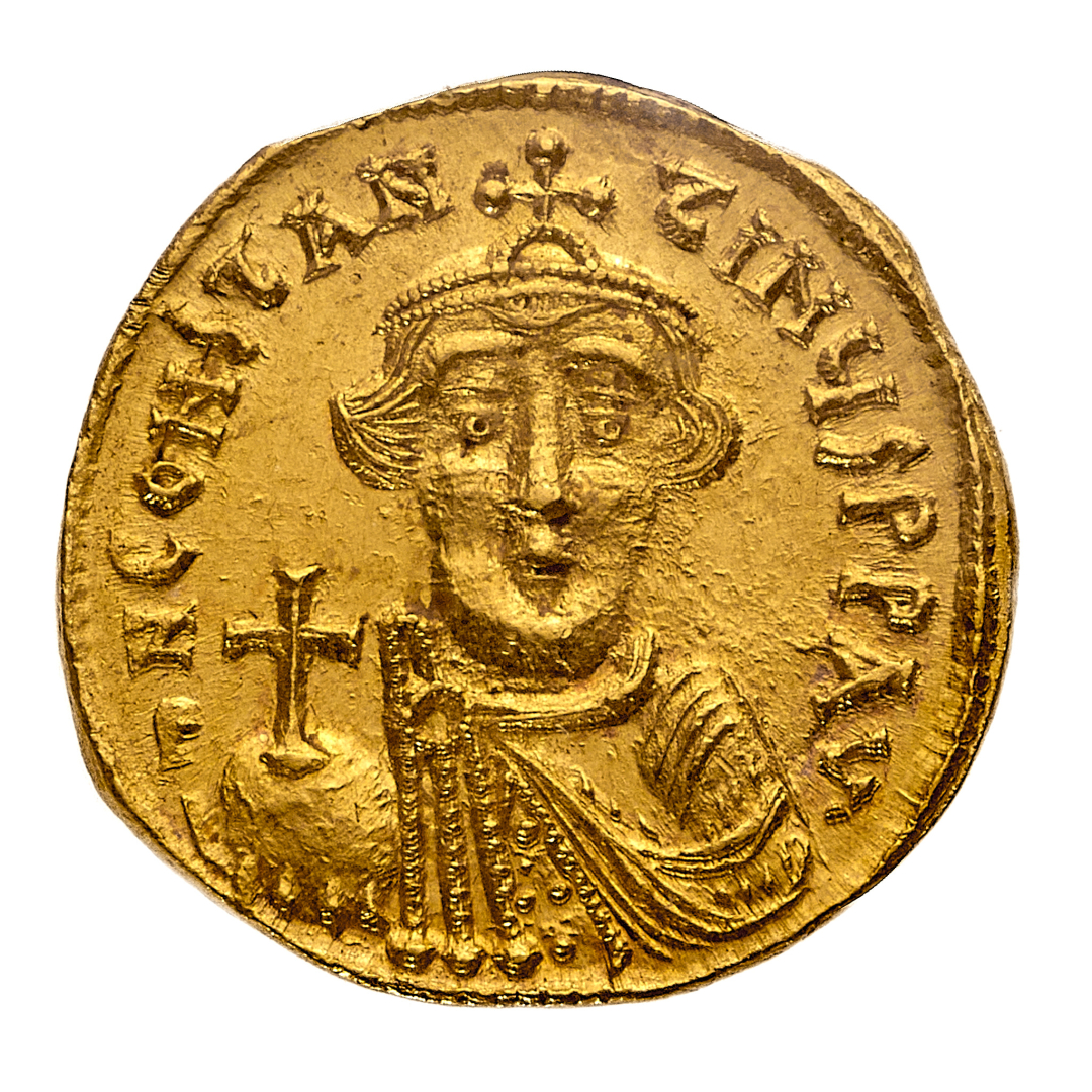 Costante II (641-668) - Solido databile al periodo 641-646 - Zecca: Costantinopoli - Diritto: mezzo busto coronato dell'Imperatore di fronte con un globo crucigero nella mano destra - Rovescio: croce potenziata su un basamento di tre gradini - gr. 4,43 - Sigillata ("q.FDC")