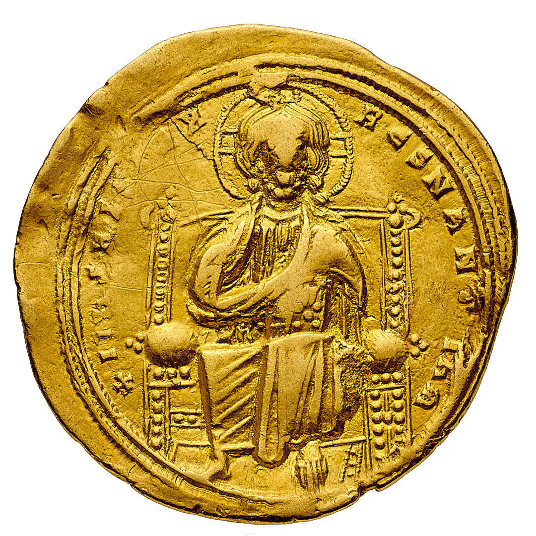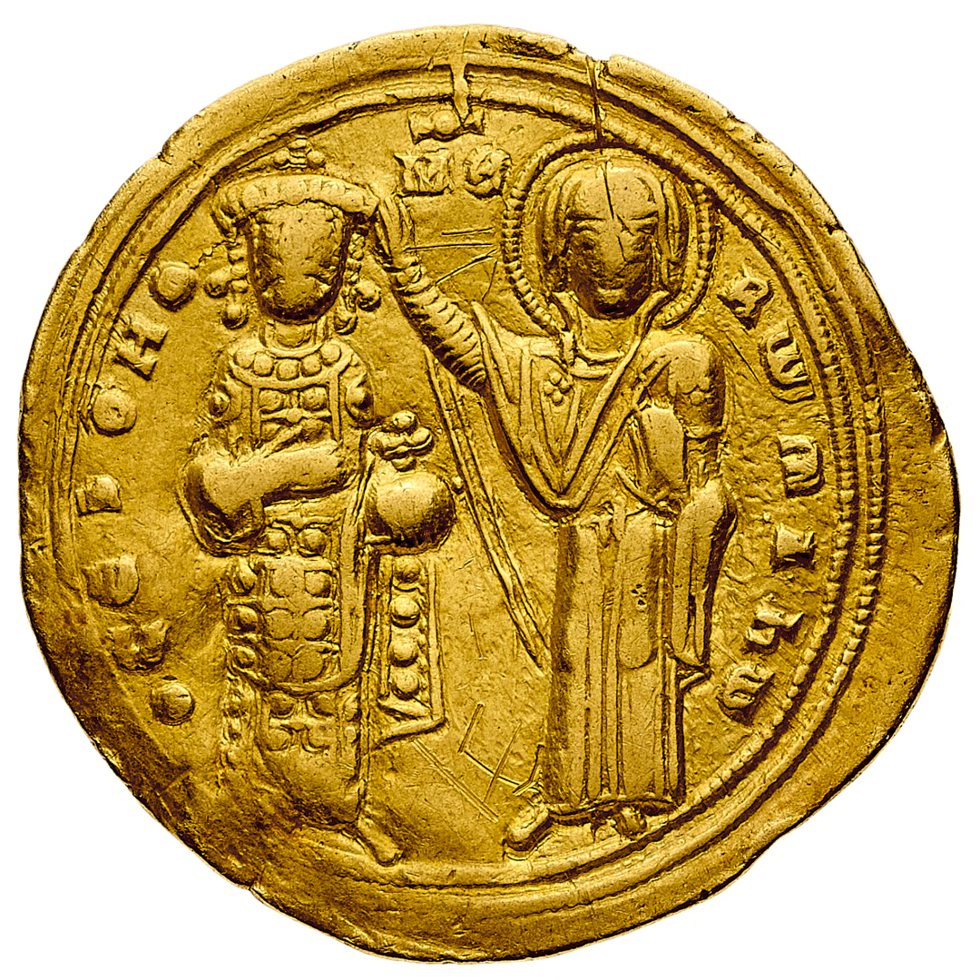 Romano III (1028-1034) - Histamenon - Zecca: Costantinopoli - Diritto: Gesù Cristo benedicente seduto di fronte - Rovescio: l'Imperatore stante di fronte con a fianco la Vergine nell'atto di incoronarlo con la mano destra - gr. 4,31 - BB