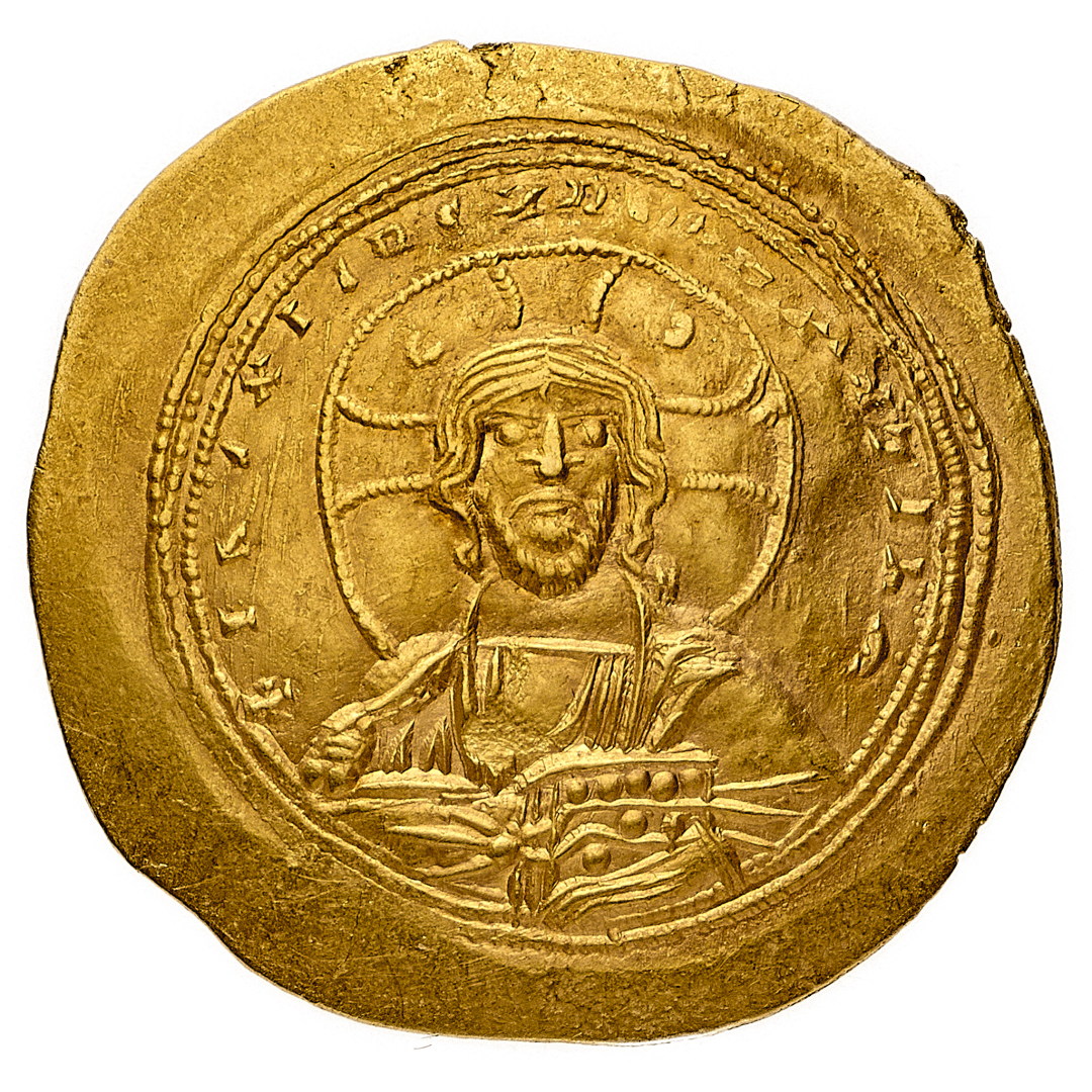Costantino IX (1052-1055) - Histamenon - Zecca: Costantinopoli - Diritto: Gesù Cristo "Pantocrator" di fronte - Rovescio: l'Imperatore stante di fronte tiene uno scettro ornato culminante in una croce con la mano destra e un globo sormontato da una croce patriarcale con la sinistra - gr. 4,33 - SPL
