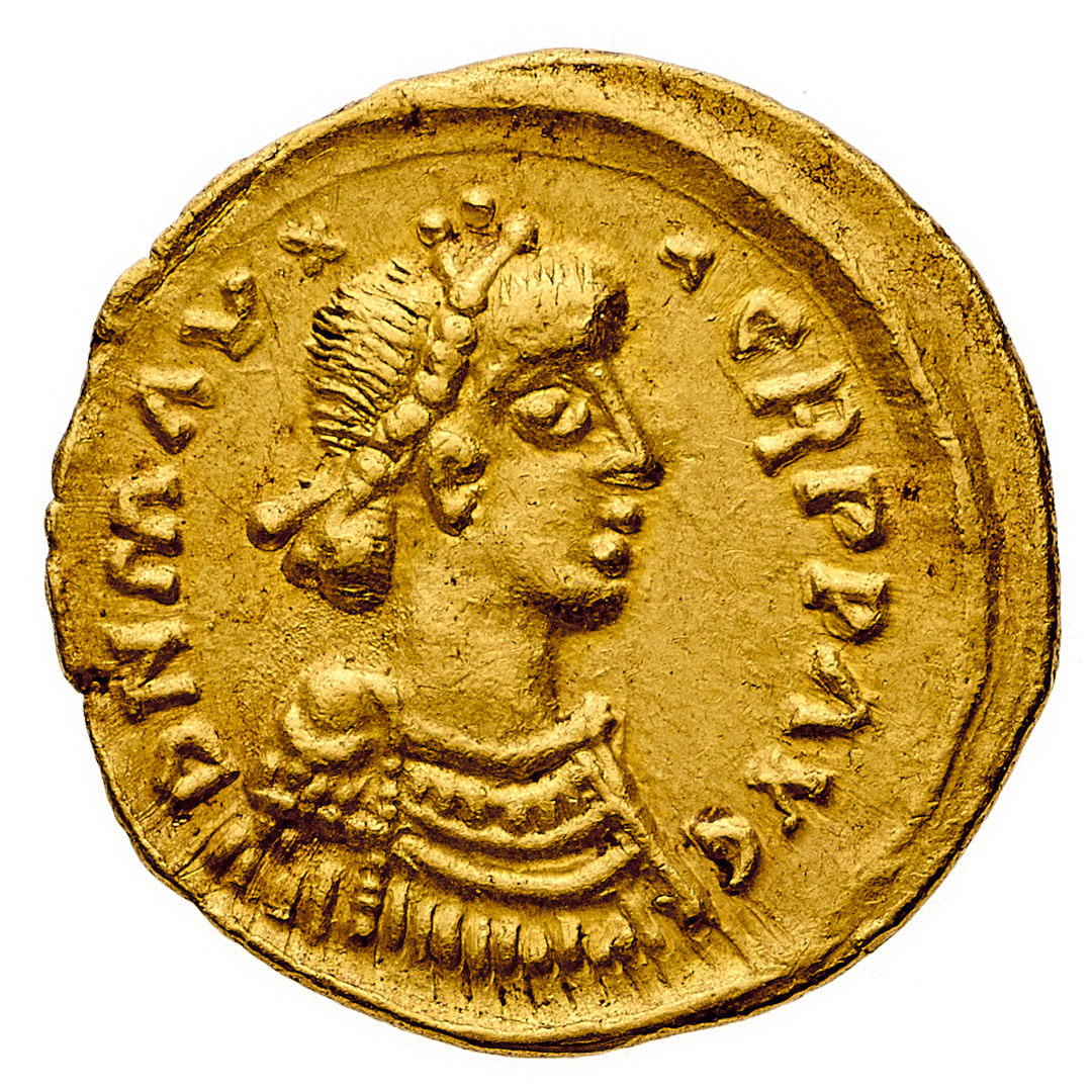 SOLIDO DEL PESO DI 21 SILIQUE AL NOME E CON L'EFFIGIE DI MAURIZIO TIBERIO DATABILE AL PERIODO 582-602