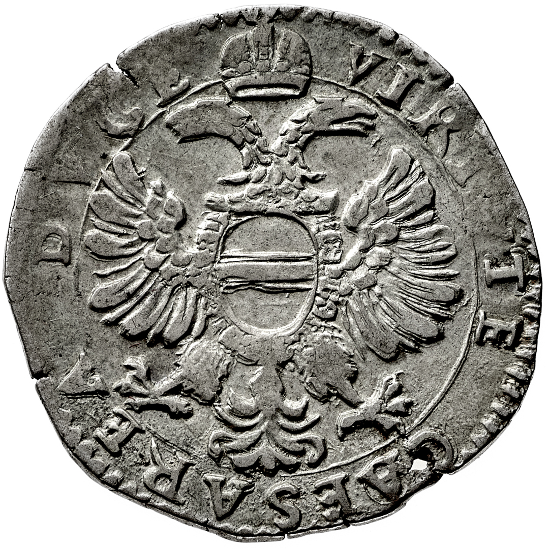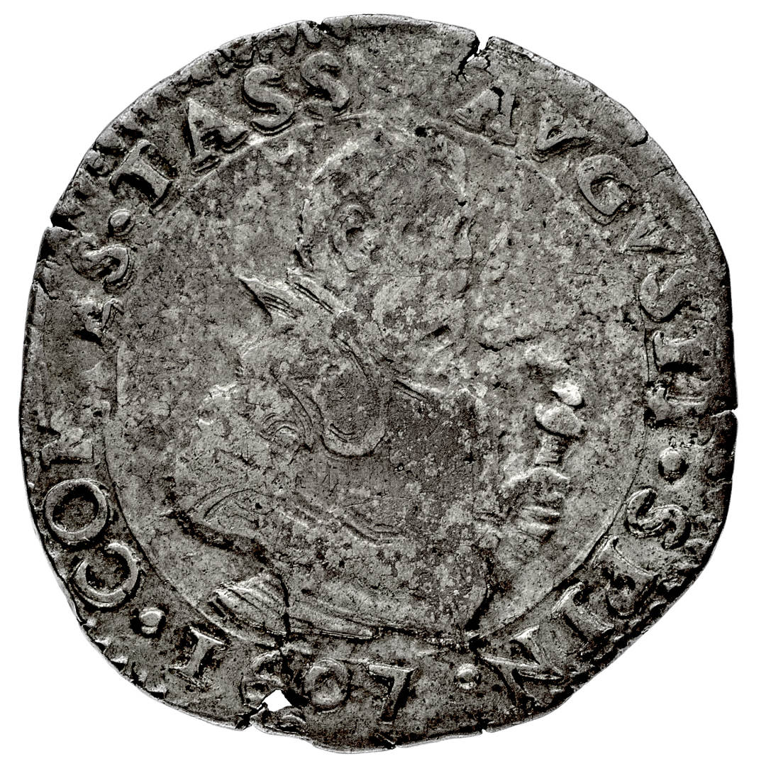 Agostino Spinola Conte (1604-1616) - Quarto di Scudo 1607 - Diritto: busto corazzato del Conte a destra - Rovescio: aquila bicipite con scudo in petto - gr. 6,58 - Lievi fratture di conio, BB - Corredata dal cartellino di Oscar Rinaldi