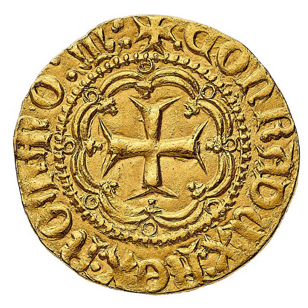 Periodo dei Dogi a vita (1339-1528) - Paolo di Campofregoso Cardinale e Doge XXXI (1483-1488) - Ducato - Diritto: castello sormontato dal cappello cardinalizio - Rovescio: croce patente in cornice a otto archi doppia con crocette e anelli - gr. 3,52 - Molto rara - SPL - Proveniente dall'asta Varesi 50, Pavia 21-22.11.2007, n. 758