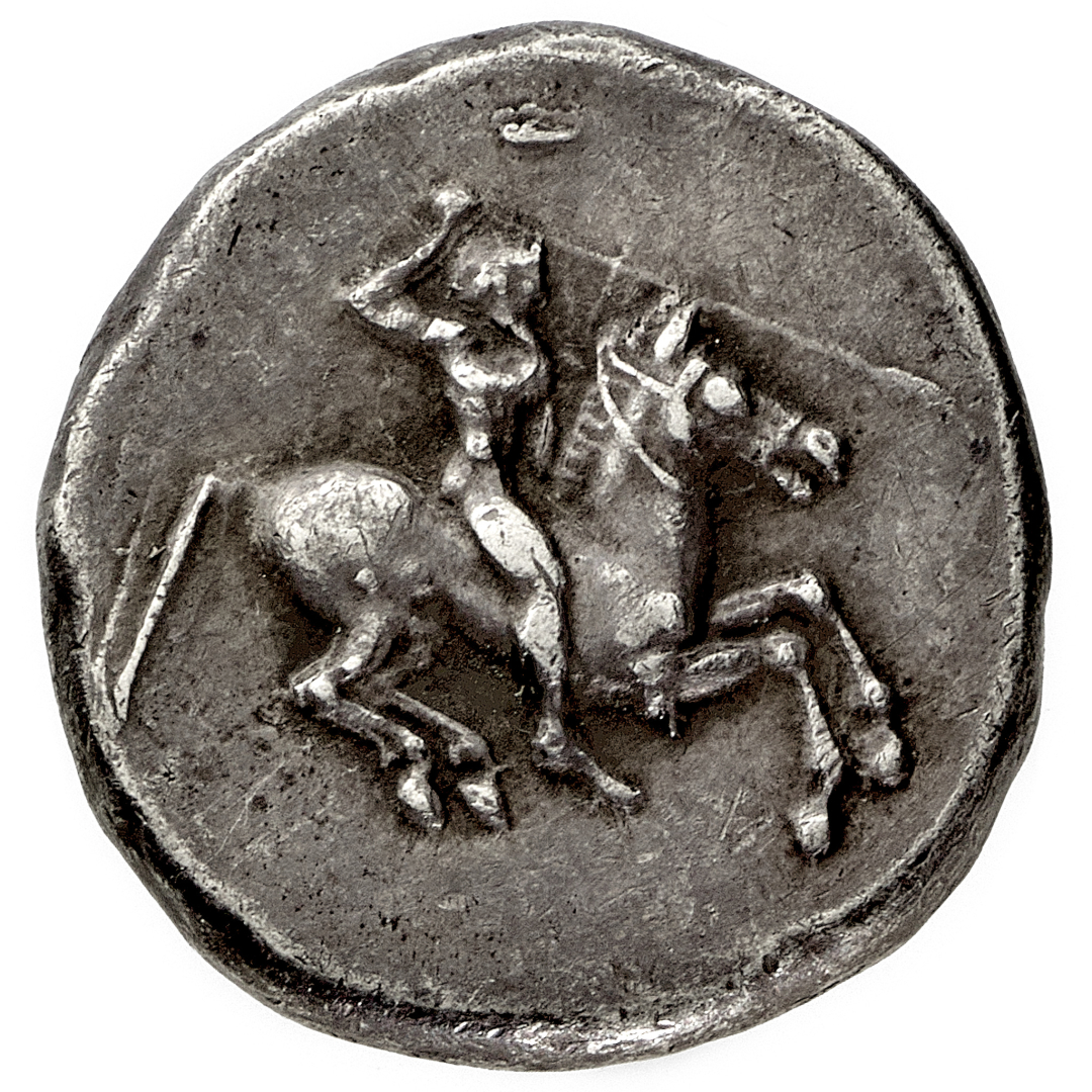 Gela - Didramma databile al periodo 490-475 a.C. - Diritto: guerriero al galoppo verso destra brandisce una lancia con il braccio destro - Rovescio: protome di toro androprosopo verso destra - gr. 8,59 - q.SPL