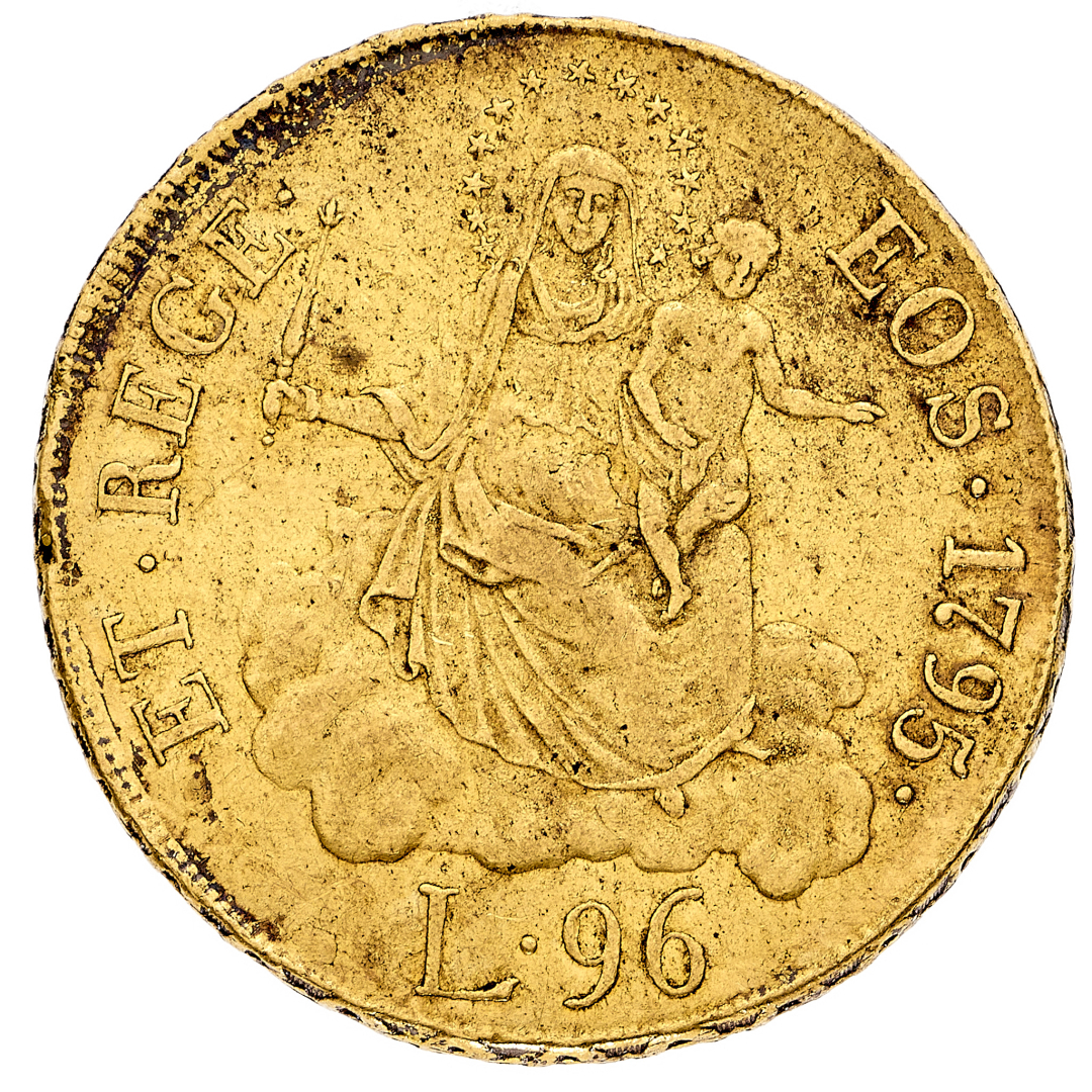 Governo dei Dogi Biennali (1528-1797) - 96 Lire 1795 - Diritto: due grifoni reggono lo stemma della Repubblica e la corona sovrastante - Rovescio: la Vergine con il Bambino - gr. 25,15 - Lievi depositi, migliore di BB