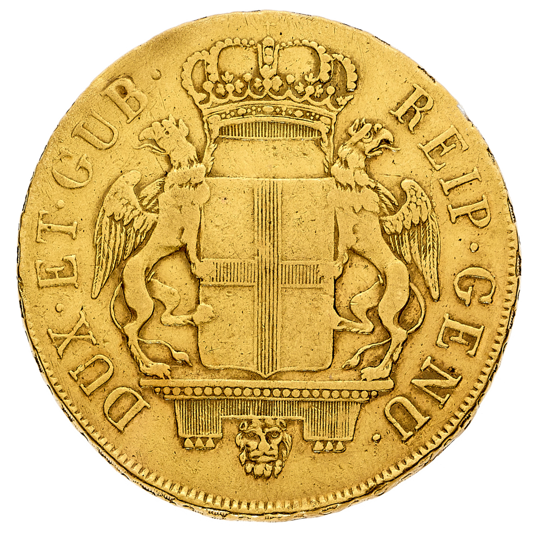 Governo dei Dogi Biennali (1528-1797) - 96 Lire 1797 - Diritto: due grifoni reggono lo stemma della Repubblica e la corona sovrastante - Rovescio: la Vergine con il Bambino - gr. 25,03 - Probabili tracce di montatura, BB