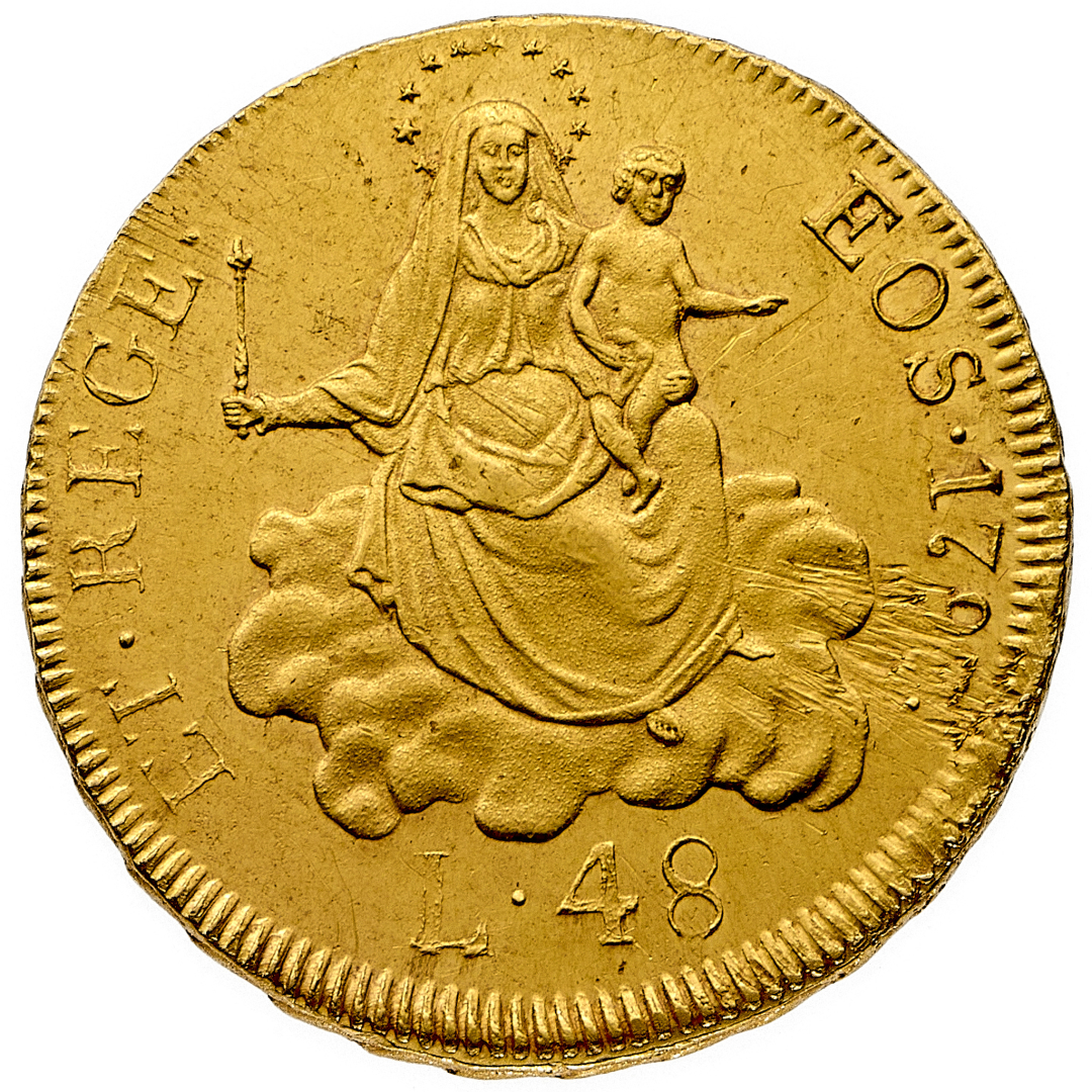 Governo dei Dogi Biennali (1528-1797) - 48 Lire 1797 - Diritto: due grifoni reggono lo stemma della Repubblica e la corona sovrastante - Rovescio: la Vergine con il Bambino - gr. 12,58 - Non comune - Migliore di SPL