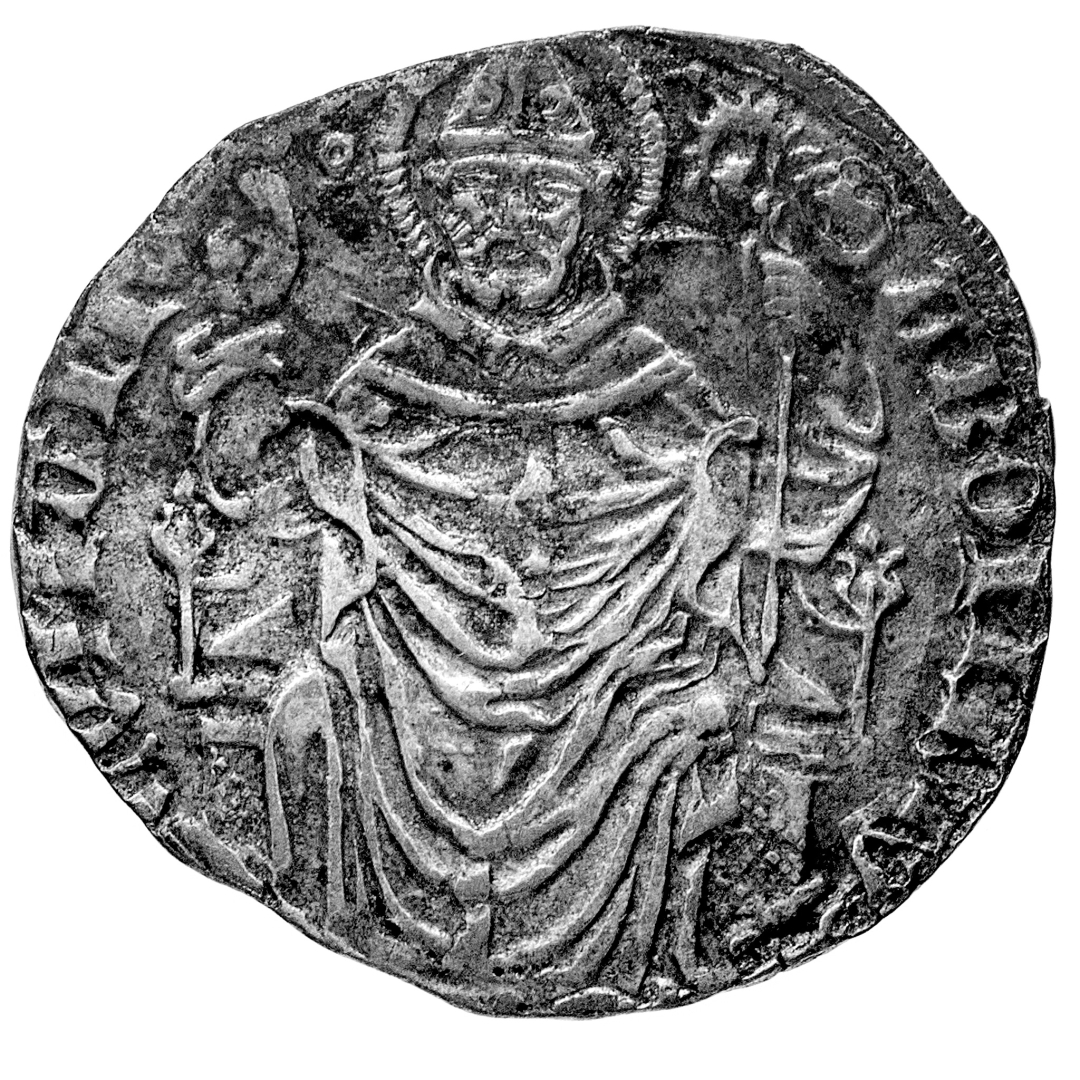 Franchino II Rusca (1408-1412) - Grosso - Diritto: croce fiorata entro doppia cornice quadrilobata - Rovescio: San Abbondio seduto in trono di fronte benedicente - gr. 2,41 - Molto rara - Lievi ondulazioni del tondello, altrimenti migliore di BB
