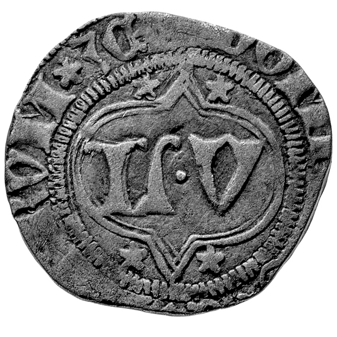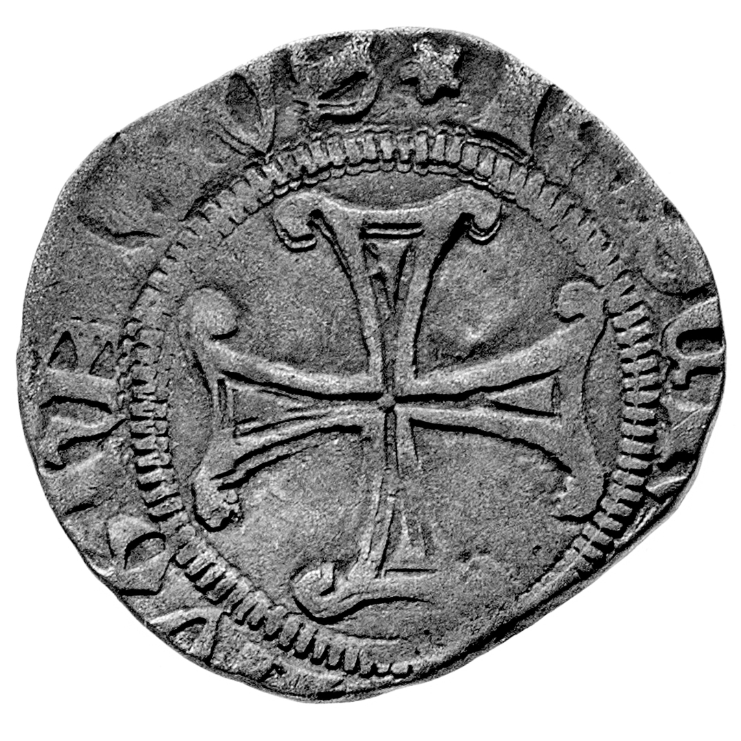 Lotterio IV Rusca (1412-1416) - Denaro - Diritto: croce ornata - Rovescio: lettere L e V in cornice a due archi - gr. 0,93 - Molto rara - q.BB - Corredata dal cartellino di Oscar Rinaldi