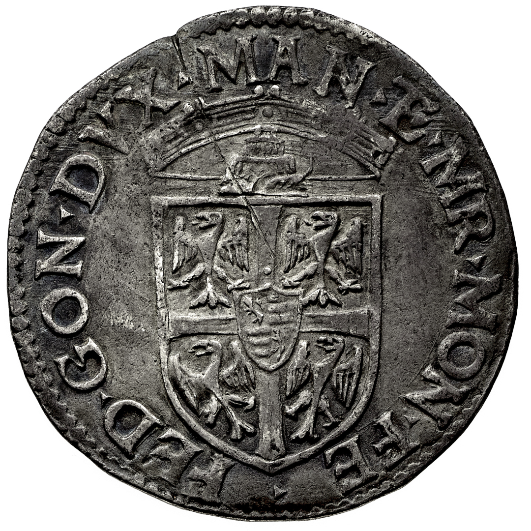 Federico II Gonzaga (1530-1536) - Lira Moceniga - Diritto: stemma coronato - Rovescio: S. Andrea con croce porge la pisside a S. Longino - gr. 6,32 - Rara - Graffi al rovescio, BB