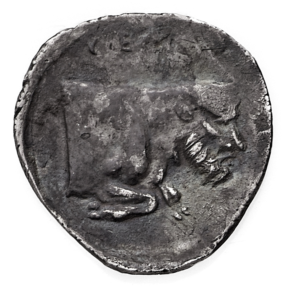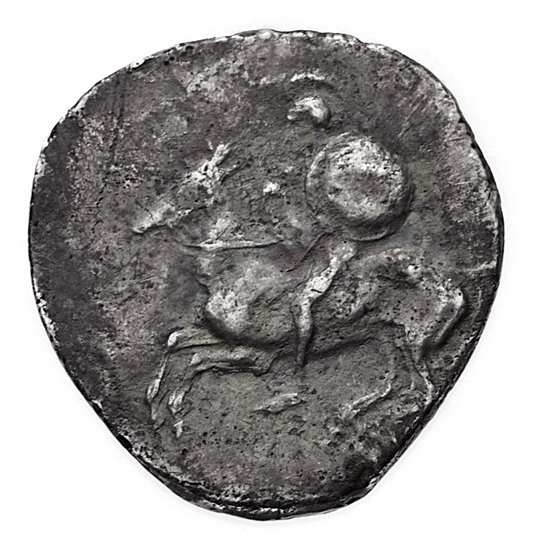 Gela - Litra databile al periodo 430-425 a.C. - Diritto: guerriero al galoppo verso sinistra - Rovescio: protome di toro androprosopo a destra - gr. 0,71 - Non comune - BB