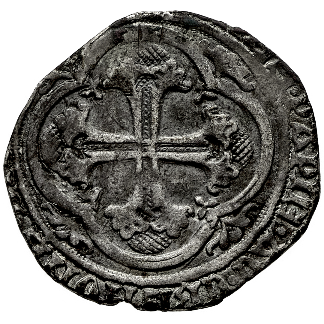 Francesco I Sforza (1447-1450) - Grosso - Diritto: biscione visconteo con il fanciullo tra le fauci; ai lati C.F. - Rovescio: croce fogliata in cornice quadrilobata - gr. 1,80 - Molto rara - q.BB