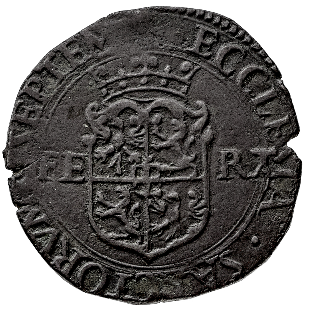 Giulio Cesare Gonzaga (1583-1593) - Contraffazione del Bianco di Savoia 1583 - Diritto: stemma coronato - Rovescio: croce mauriziana in doppia cornice quadrilobata - gr. 4,33 - Rara - BB - Corredata dal cartellino di Oscar Rinaldi
