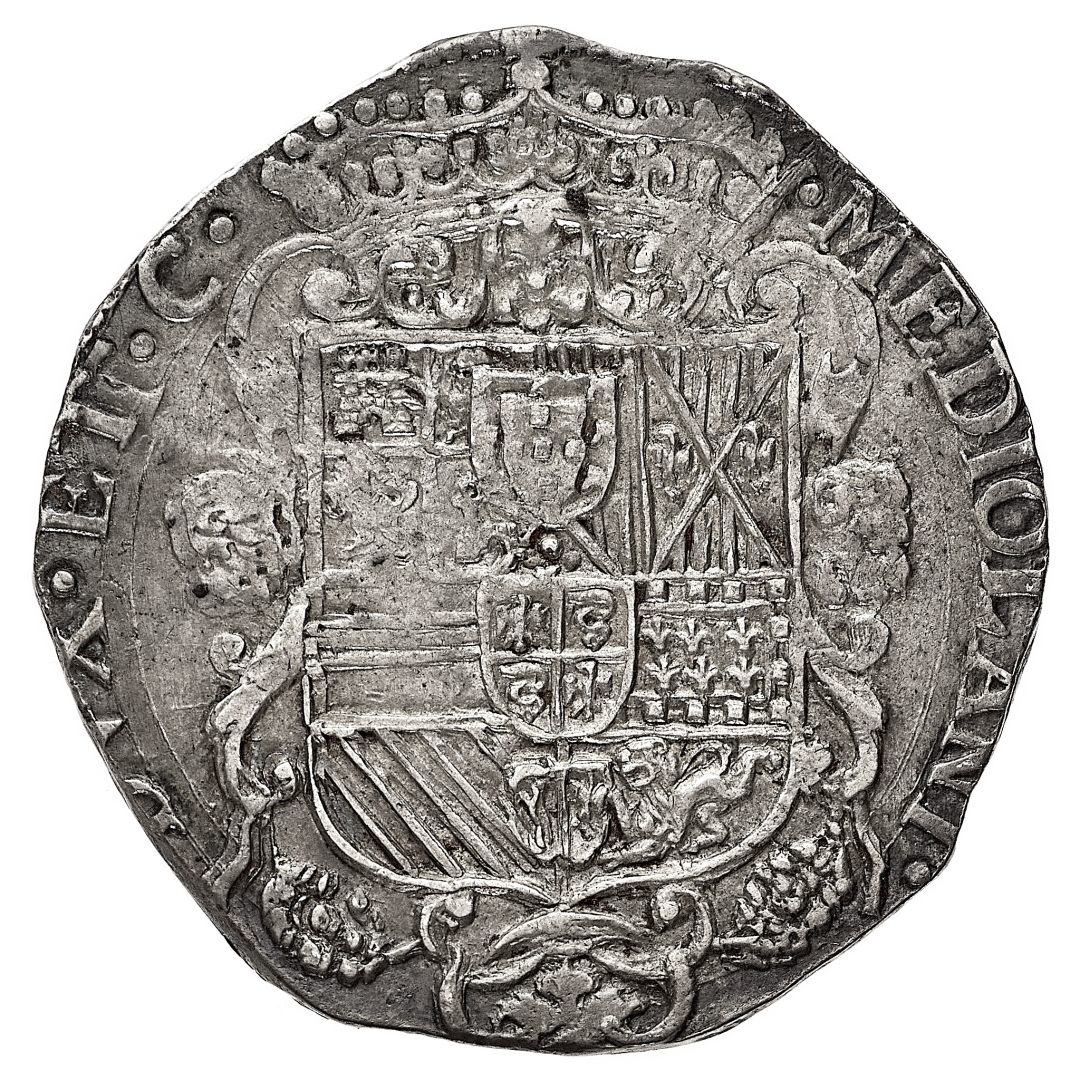 Carlo II di Spagna (1665-1700) - Filippo 1676 - Diritto: busto paludato e corazzato di Carlo II a destra - Rovescio: stemma di Spagna coronato e caricato dello stemma di Milano - gr. 27,67 - q.SPL