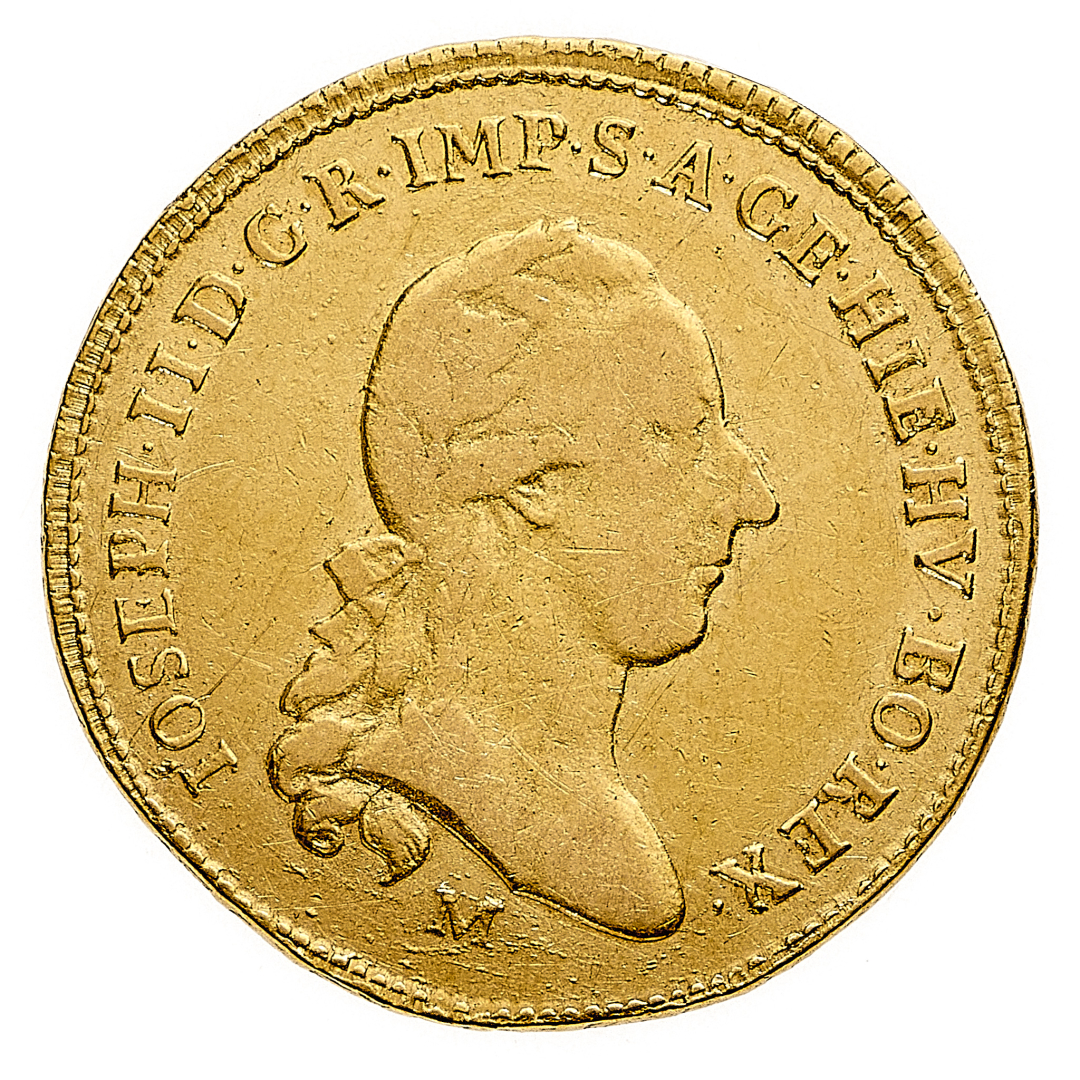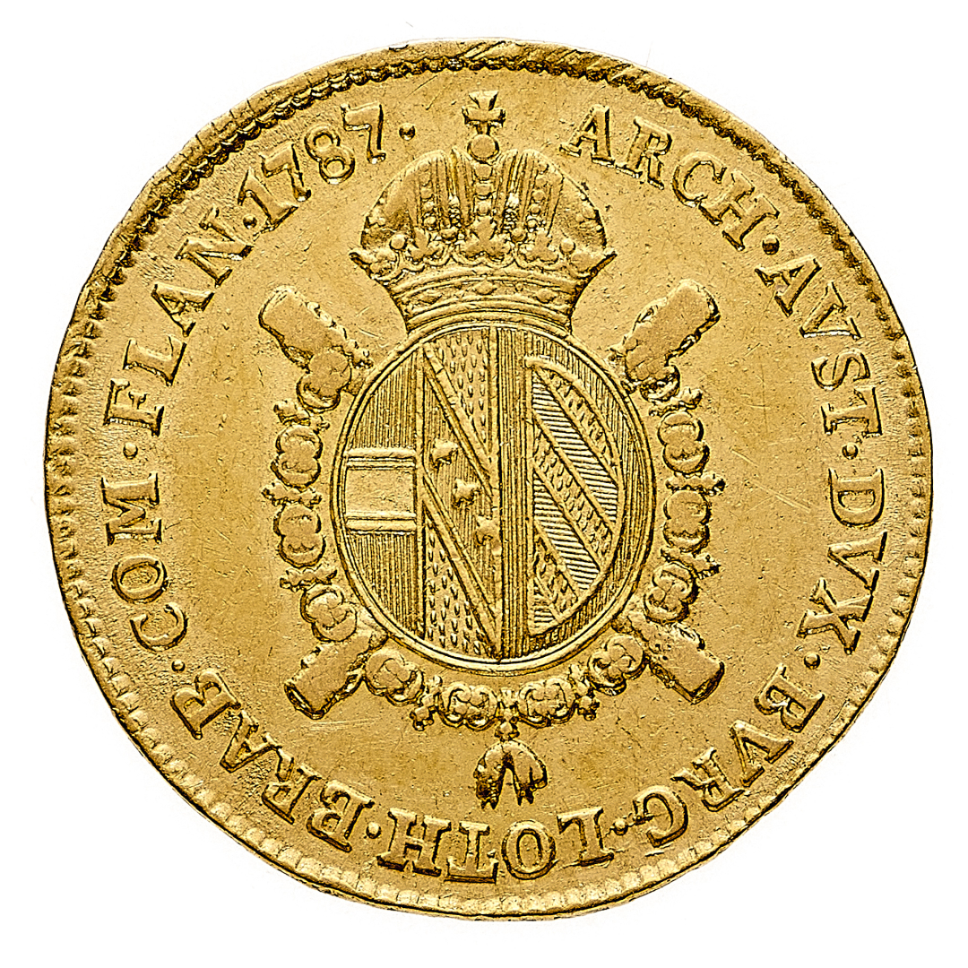 Giuseppe II d'Asburgo (1780-1790) - Mezza Sovrana 1787 - Diritto: testa laureata di Giuseppe II a destra - Rovescio: stemma coronato e circondato dal Collare del Toson d'Oro - gr. 5,55 - BB