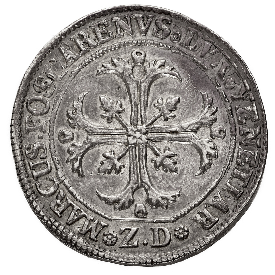 Marco Foscarini (1762-1763) - Mezzo Scudo della Croce da 70 Soldi - Zecca: Venezia - Diritto: croce fogliata - Rovescio: leone di San Marco entro scudo ornato - gr. 15,18 - Sigle ZD - Rara - Patina di medagliere, SPL