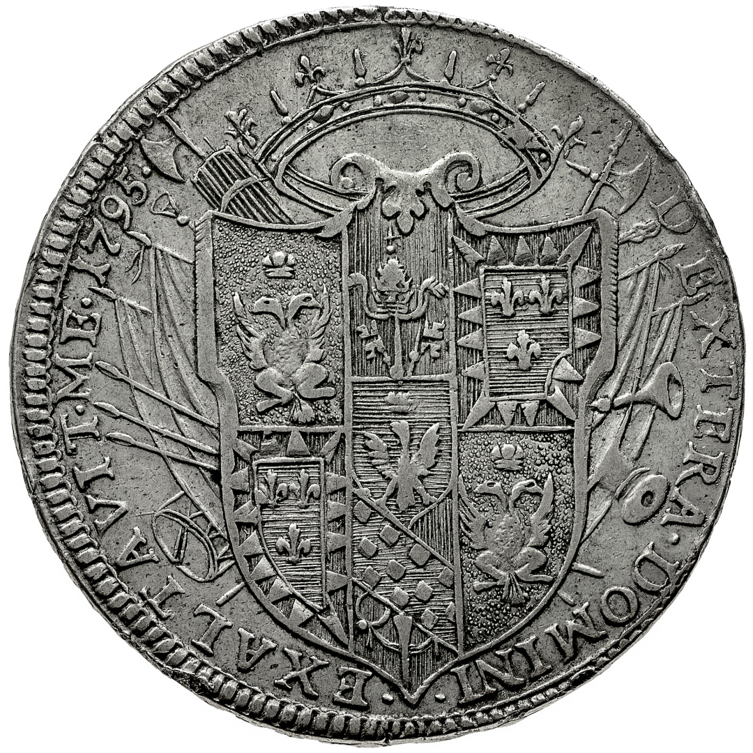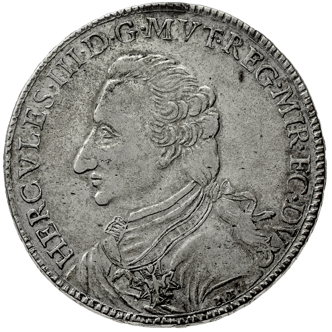 Ercole III d'Este (1780-1796) - Tallero 1795 - Zecca: Modena - Diritto: busto paludato del Duca a sinistra - Rovescio: stemma coronato sovrapposto ad un trofeo d'armi - gr. 25,66 - Migliore di BB