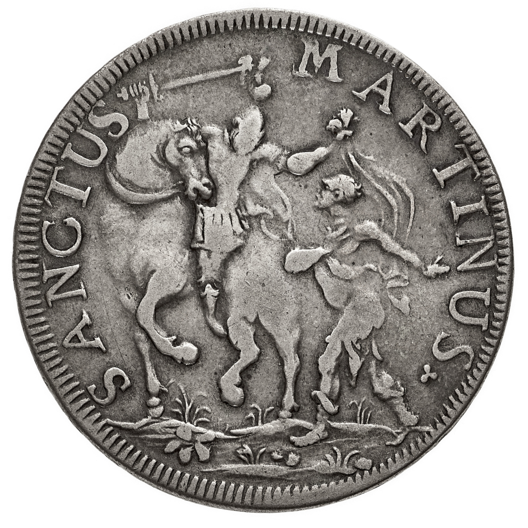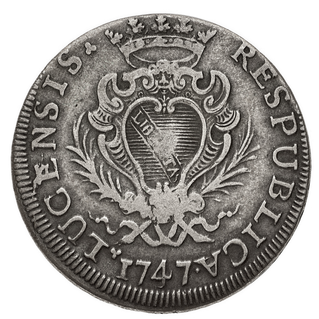 Repubblica (1369-1799) - Scudo 1747 - Diritto: stemma della Repubblica coronato entro due rami di alloro - Rovescio: San Martino a cavallo con elmo e corazza nell'atto di donare a un mendicante parte del proprio mantello - gr. 26,49 - BB