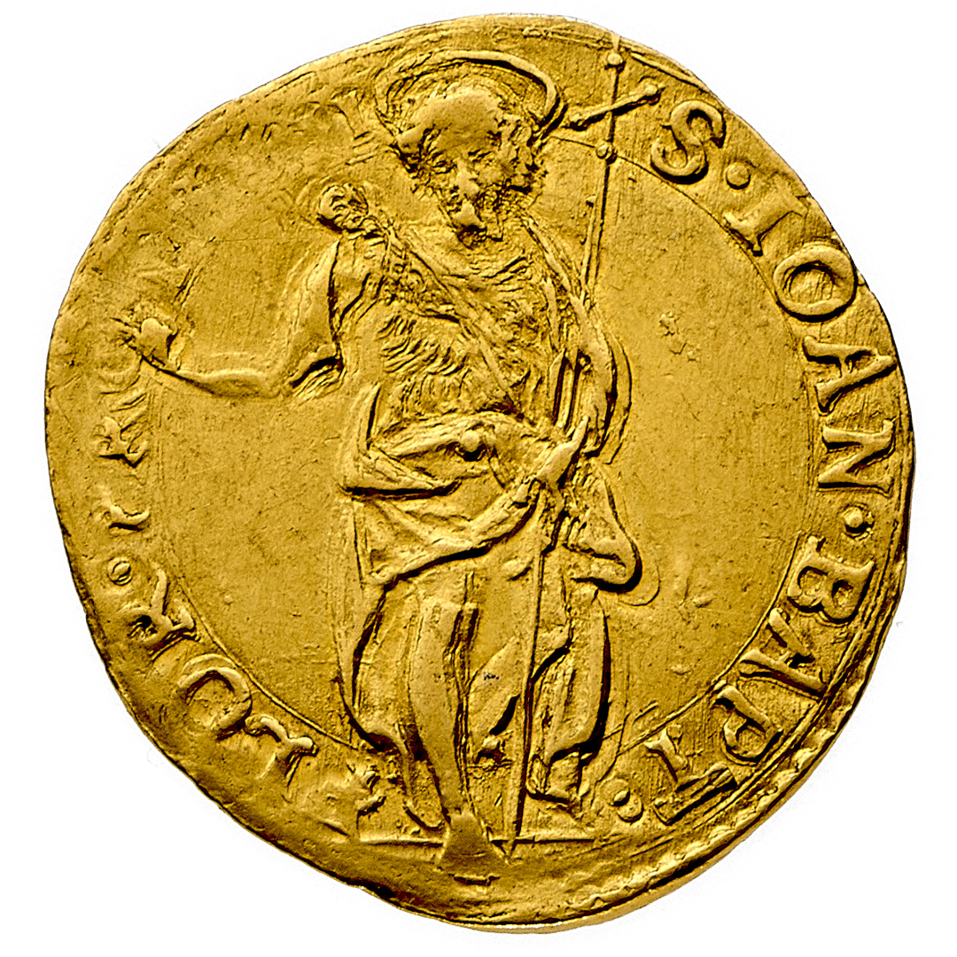Cosimo II de' Medici (1608-1621) - Fiorino 1611 - Zecca: Firenze - Diritto: giglio fiorentino - Rovescio: San Giovanni Battista stante di fronte alza la mano destra benedicente e tiene una croce con la sinistra - gr. 3,50 - Rara - Lievi debolezze di conio, q.SPL