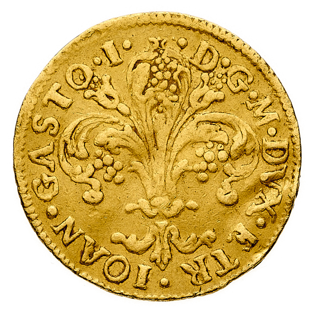 Gian Gastone de' Medici (1723-1736) - Fiorino 1734 - Zecca: Firenze - Diritto: giglio fiorentino - Rovescio: San Giovanni Battista seduto a sinistra tiene una croce con la mano sinistra - gr. 3,47 - Rara - Lievi colpetti al contorno, BB