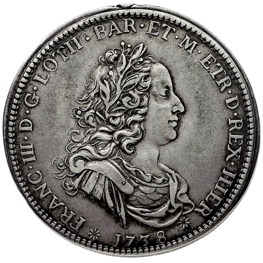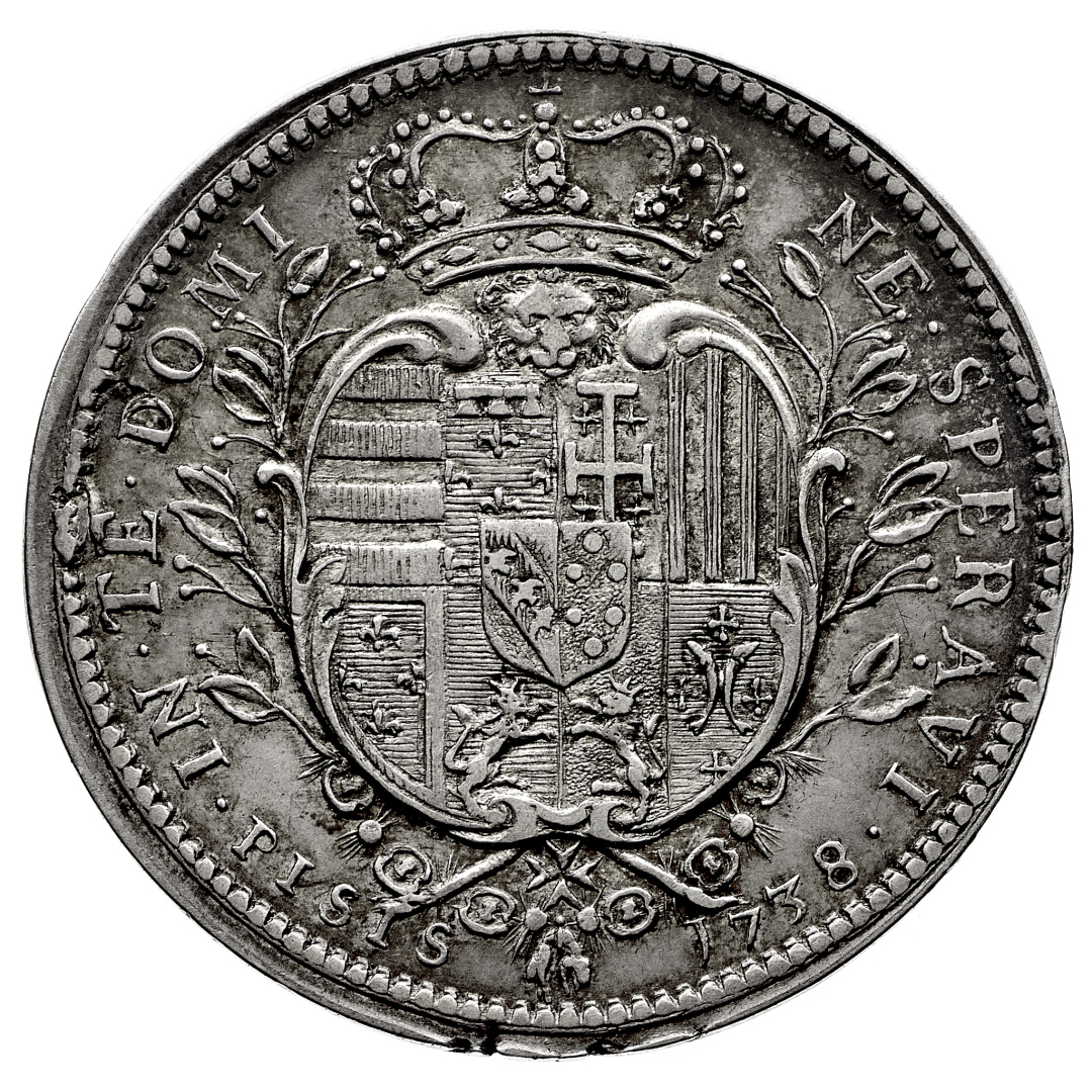 Francesco II di Lorena (1737-1765) - Mezzo Francescone 1738 - Zecca: Firenze - Diritto: effigie del Granduca a destra - Rovescio: stemma coronato e ornato da due rami di alloro - gr. 13,57 - Rara - Lievi difetti sul contorno, q.SPL