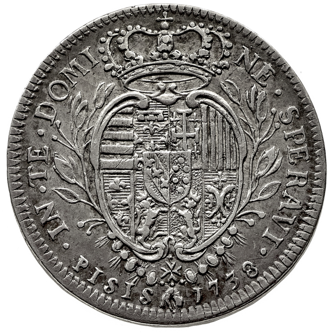 Francesco II di Lorena (1737-1765) - Doppio Paolo 1738 - Zecca: Firenze - Diritto: effigie del Granduca a destra - Rovescio: stemma coronato da due rami di alloro - gr. 5,46 - Rara - q.SPL
