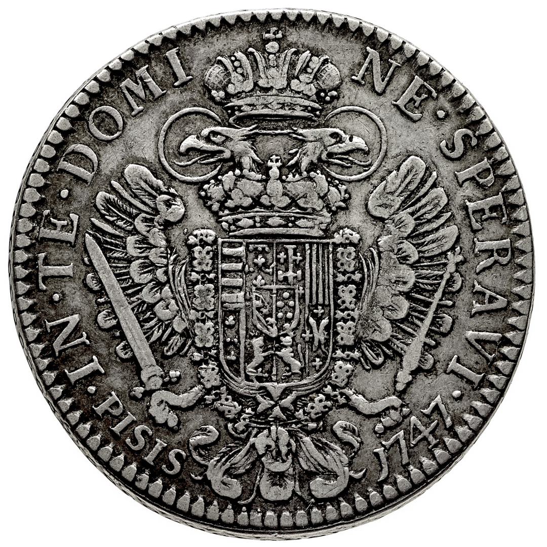 Francesco II di Lorena (1737-1765) - Francescone 1747 - Zecca: Firenze - Diritto: busto paludato e corazzato del Granduca a destra - Rovescio: aquila bicipite coronata con stemma in petto - gr. 27,09 - BB