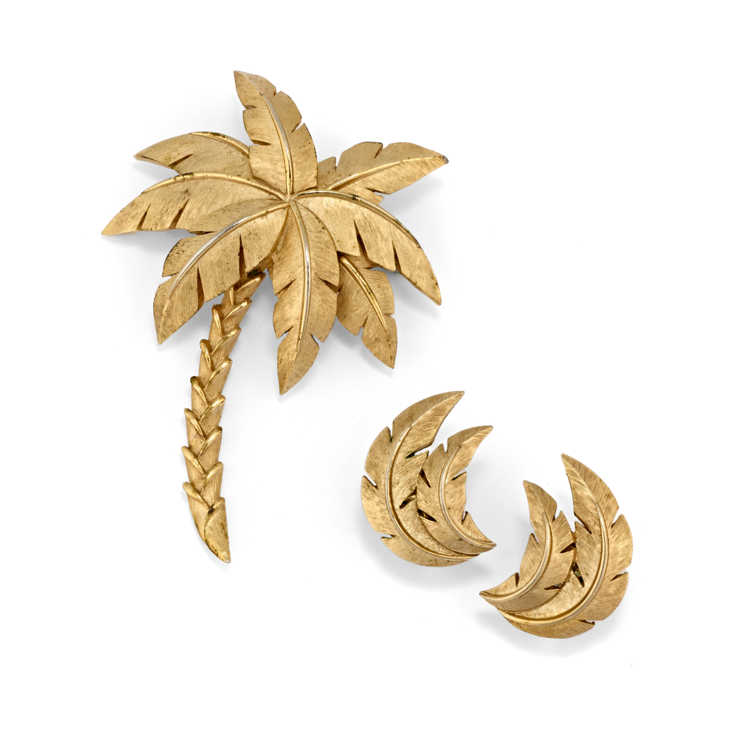 Trifanium alloy, composed of brooch and pair of clip earrings.