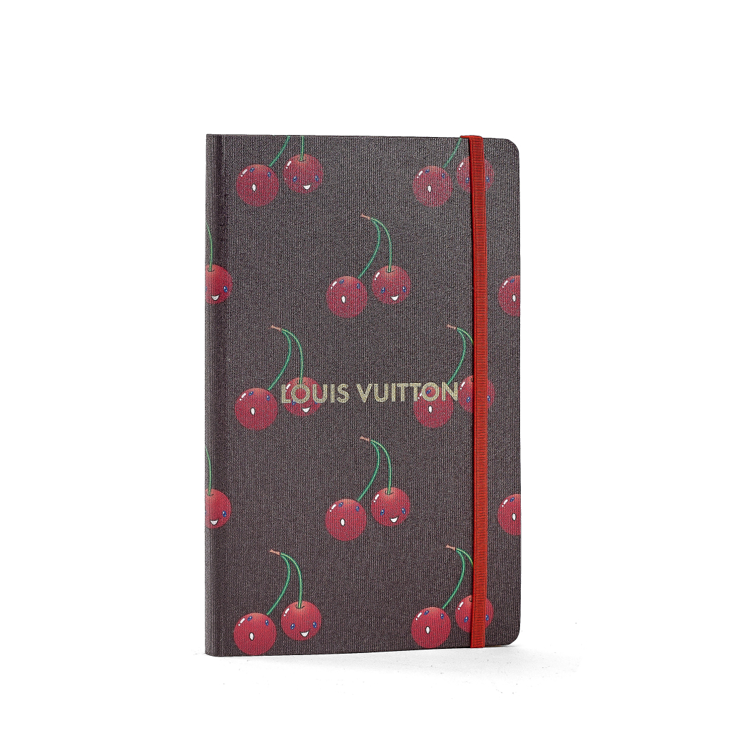 fabric cover created exclusively for the new Louis Vuitton x Takashi Murakami Collection, decorated with the vibrant cherry motif, a recurring theme in the Japanese artist’s work.
