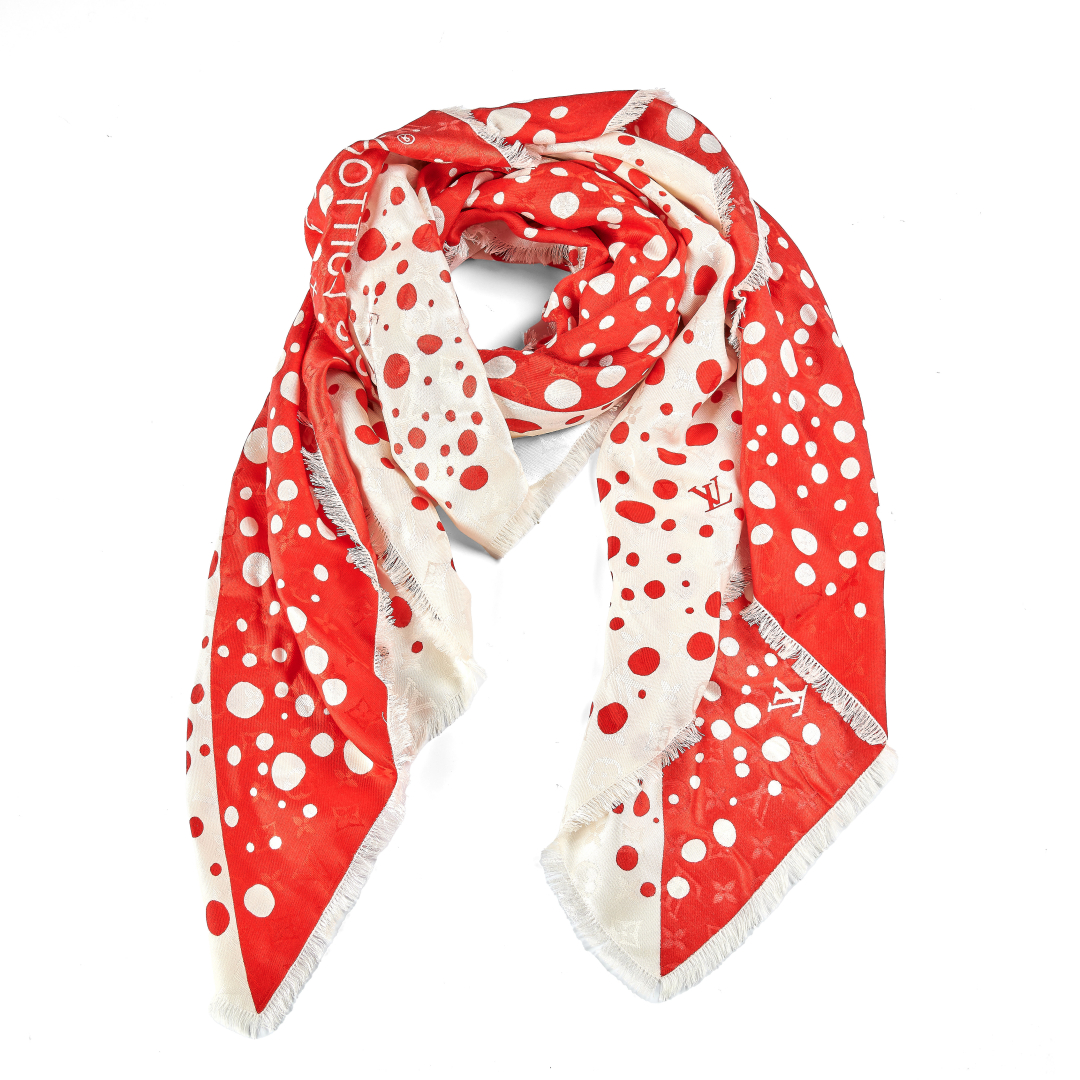 limited edition designed by Yayoi Kusama, in silk and wool blend.