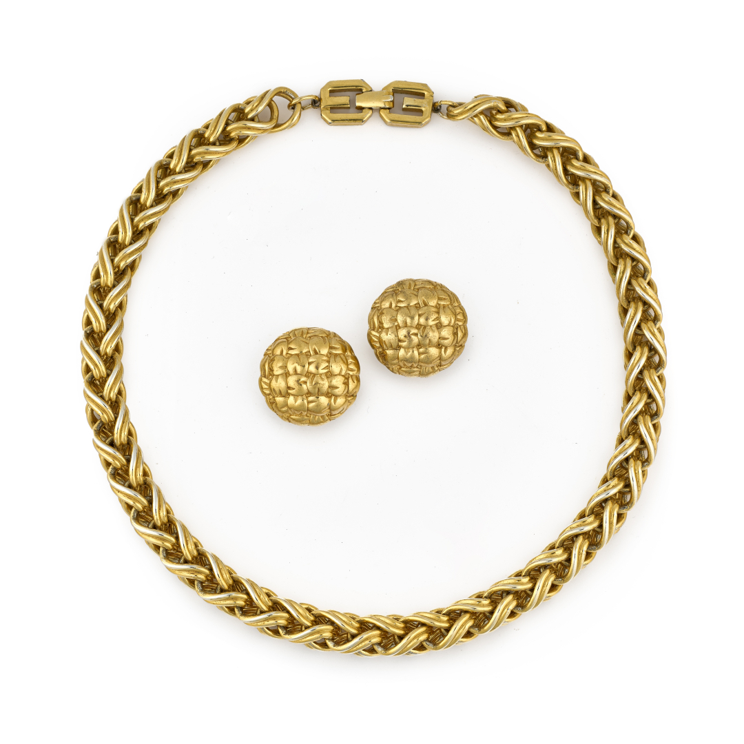 gilded metal with palmier chain, composed of a necklace and a pair of clip earrings.